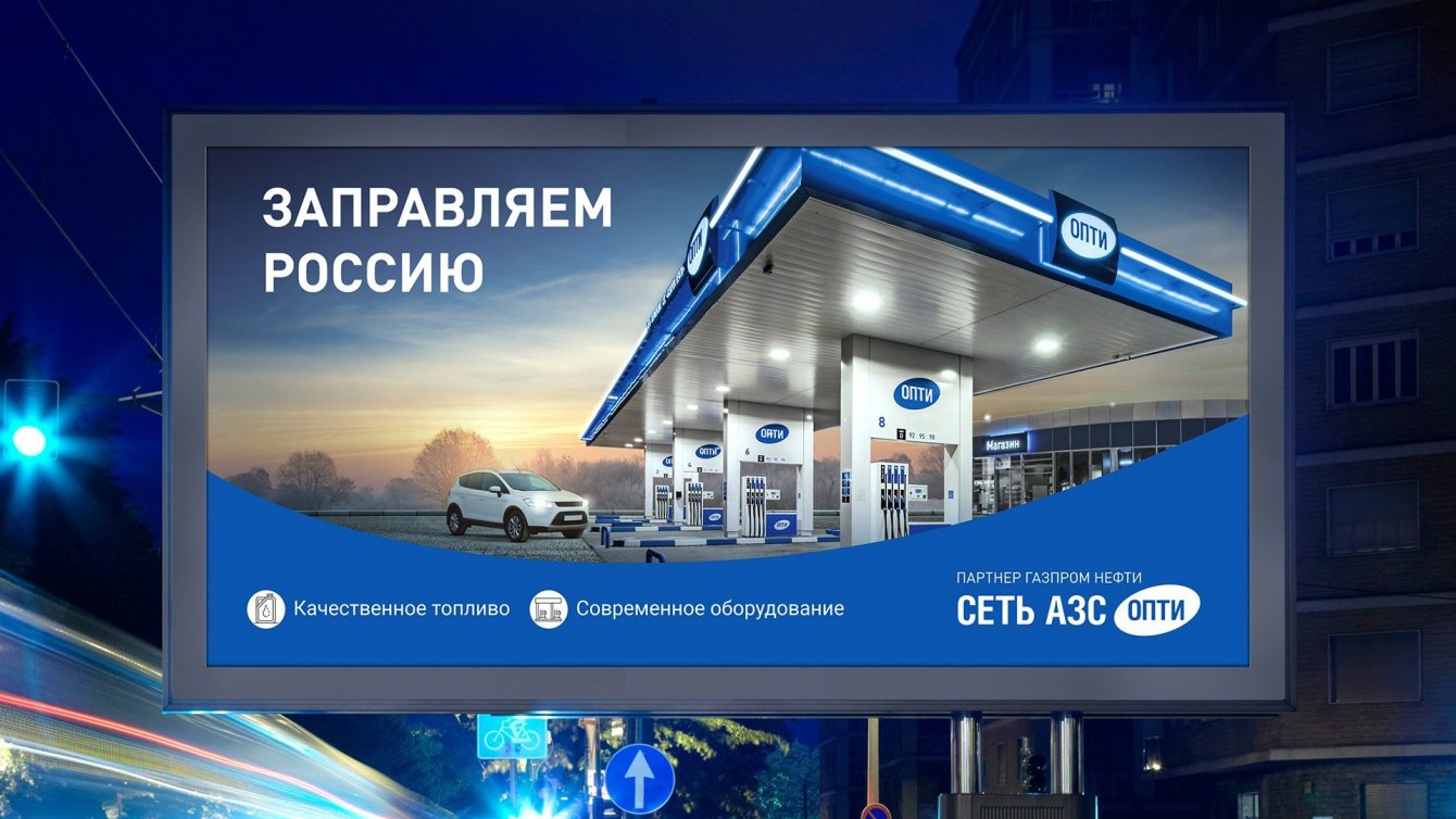 по франшизе с условием поставок и контроля качества топлива со стороны «Газпром нефти». К 2021 успешно функционировали уже десятки заправок. Масштабирование партнёрской сети потребовало создания единого визуального оформления всех станций. У бренда «ОПТИ» уже были название и логотип,