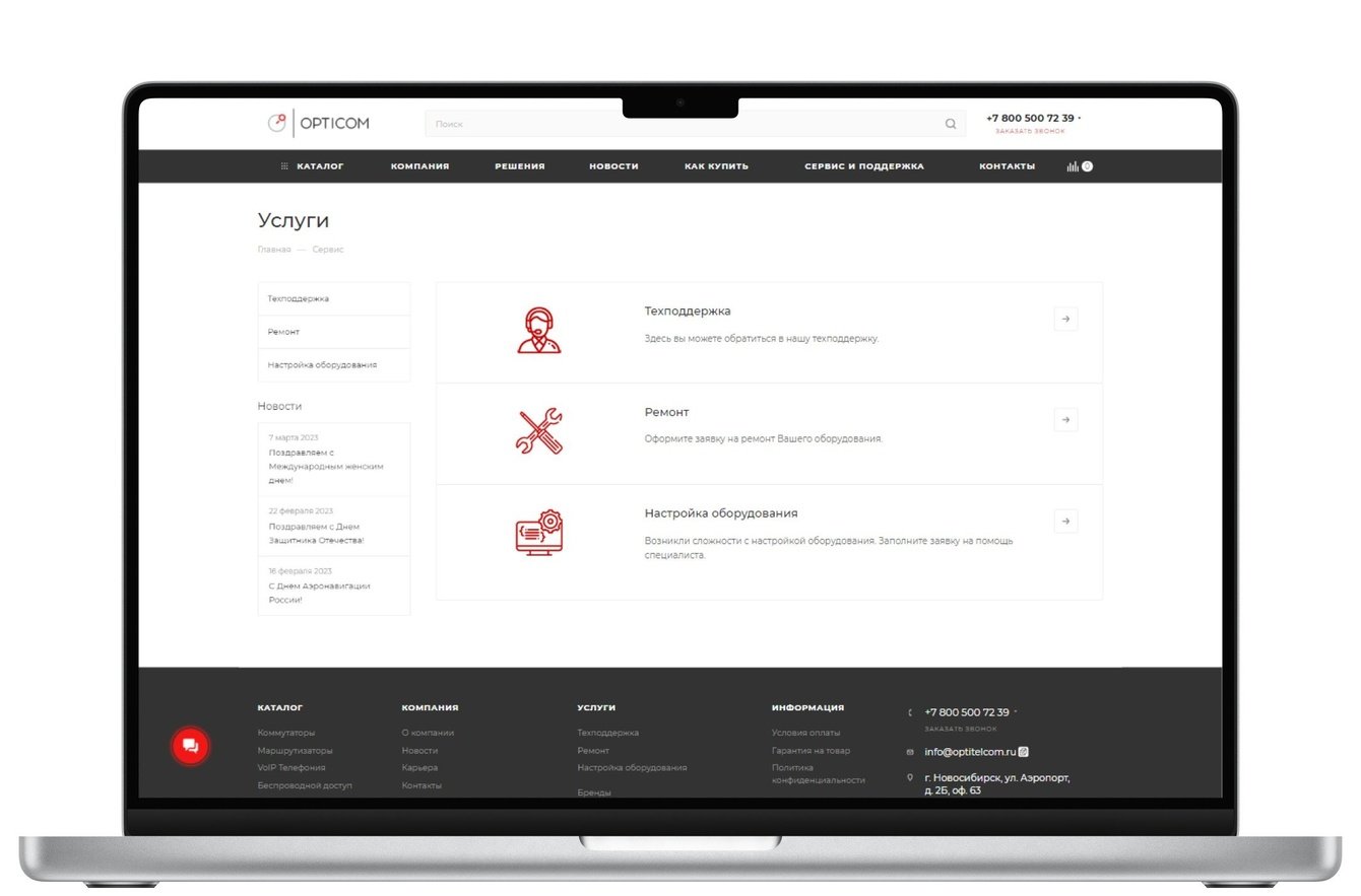 В проекте Opticom одним из ключевых направлений является предоставление услуг по настройке, ремонту и технической поддержке сетевого оборудования.