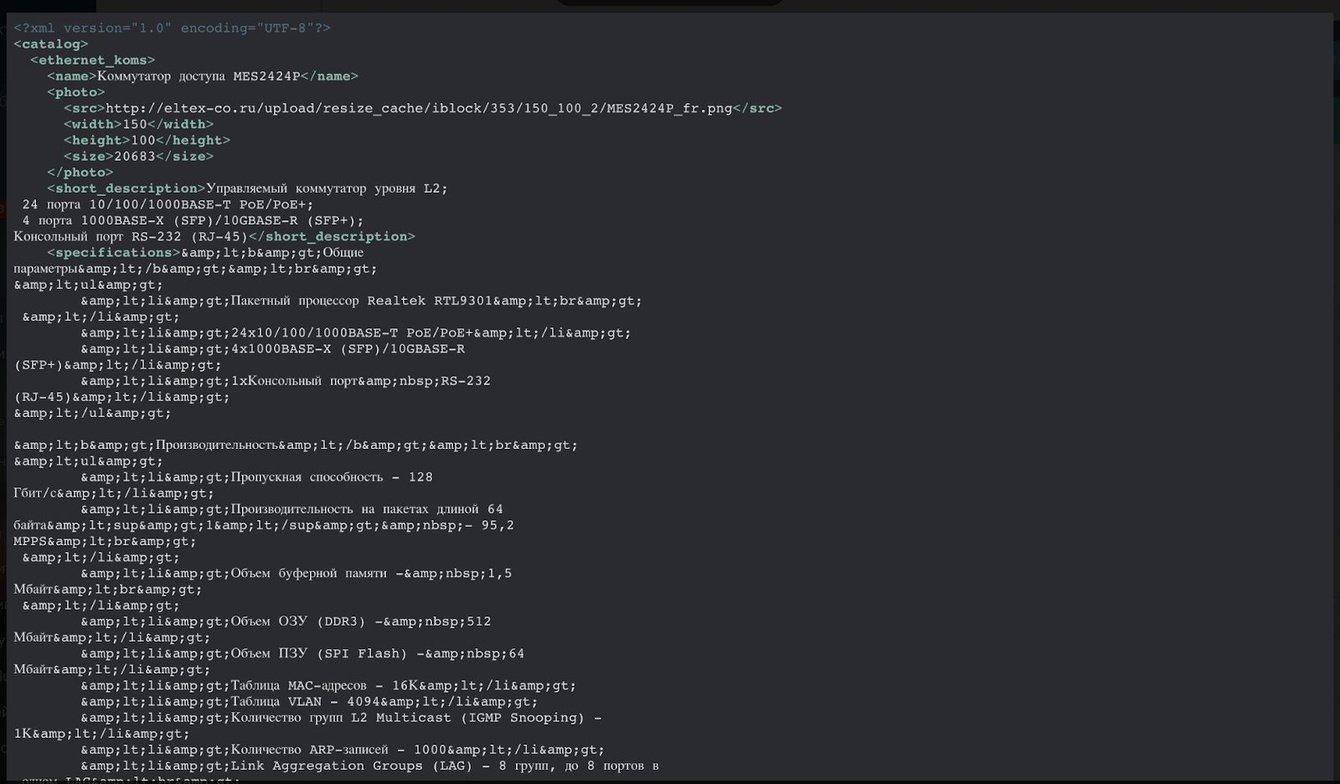 Для решения задачи загрузки каталога, у поставщиков и производителей оборудования запросили номенклатуру в формате XML.