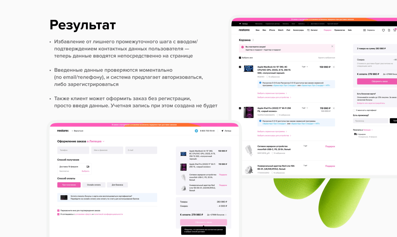 — Реализовали возможность оформления заказа для неавторизованных пользователей;