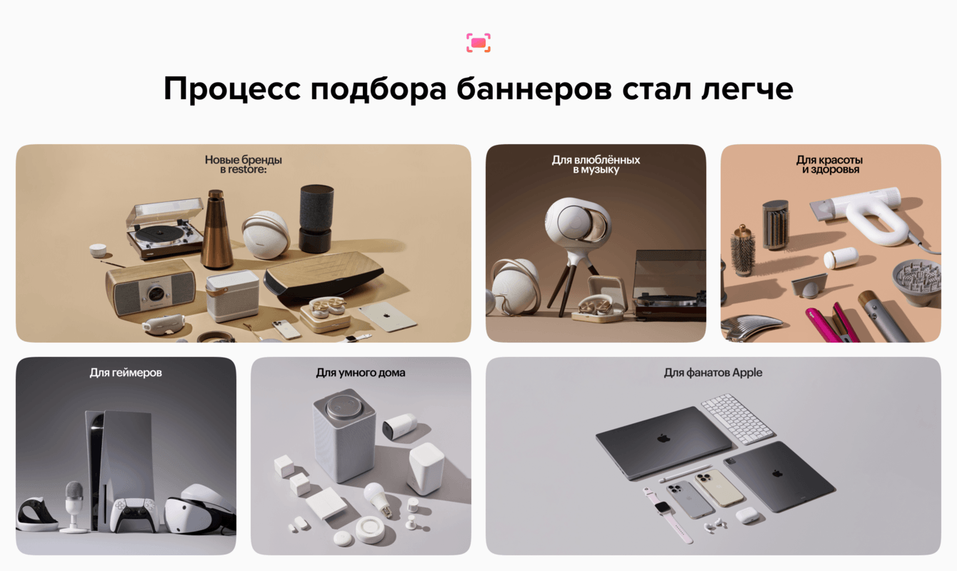 Какую проблему решили: Так как баннеры являются точкой перехода в каталог и отражают позиционирование бренда, мы внедрили единые правила для всего баннерного контента. Теперь процесс подбора баннеров оптимизирован: стало легче подбирать баннеры, администрировать и управлять.