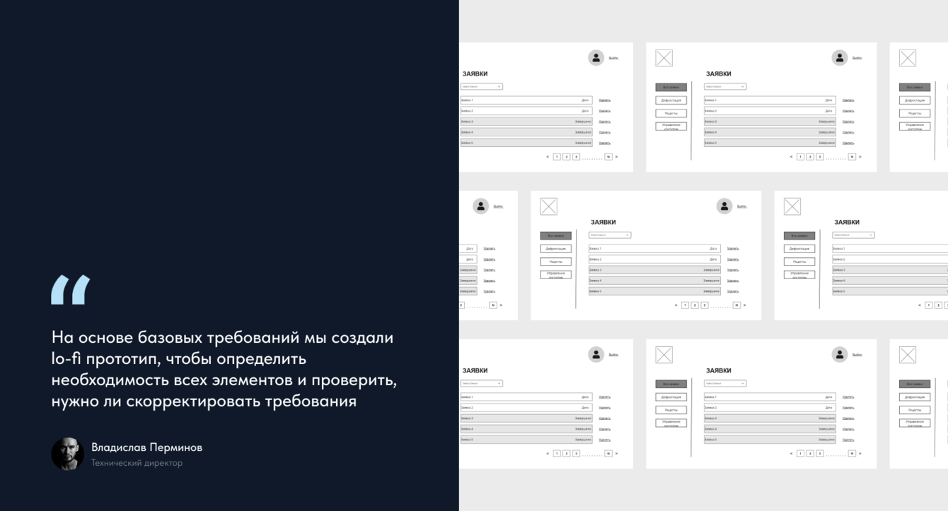 На основе этих базовых требований мы создали lo-fi прототип, чтобы определить необходимость всех элементов и проверить, нужно ли скорректировать требования.
