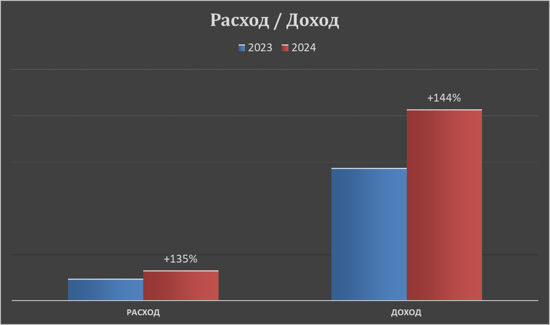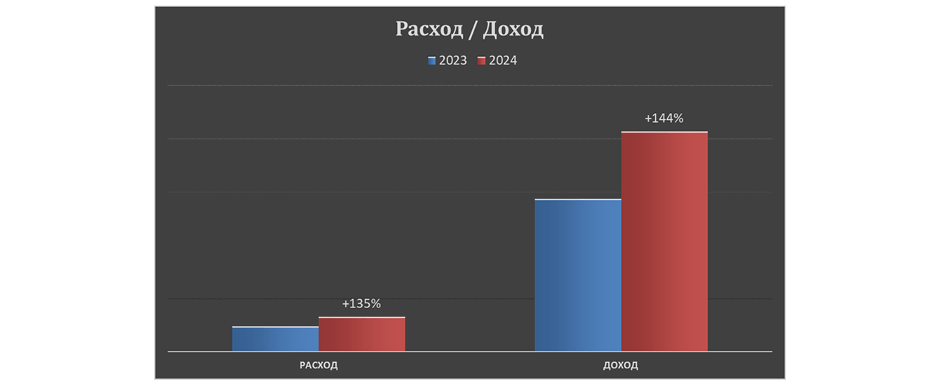 За последний год наши усилия по оптимизации рекламных кампаний и внедрению новых стратегий принесли впечатляющие результаты. Расходы на рекламу увеличились на 135%, что позволило расширить охват аудитории. При этом доход вырос на 144%, а доля расходов на рекламу относительно дохода снизилась с 16,8% до 15,8%.