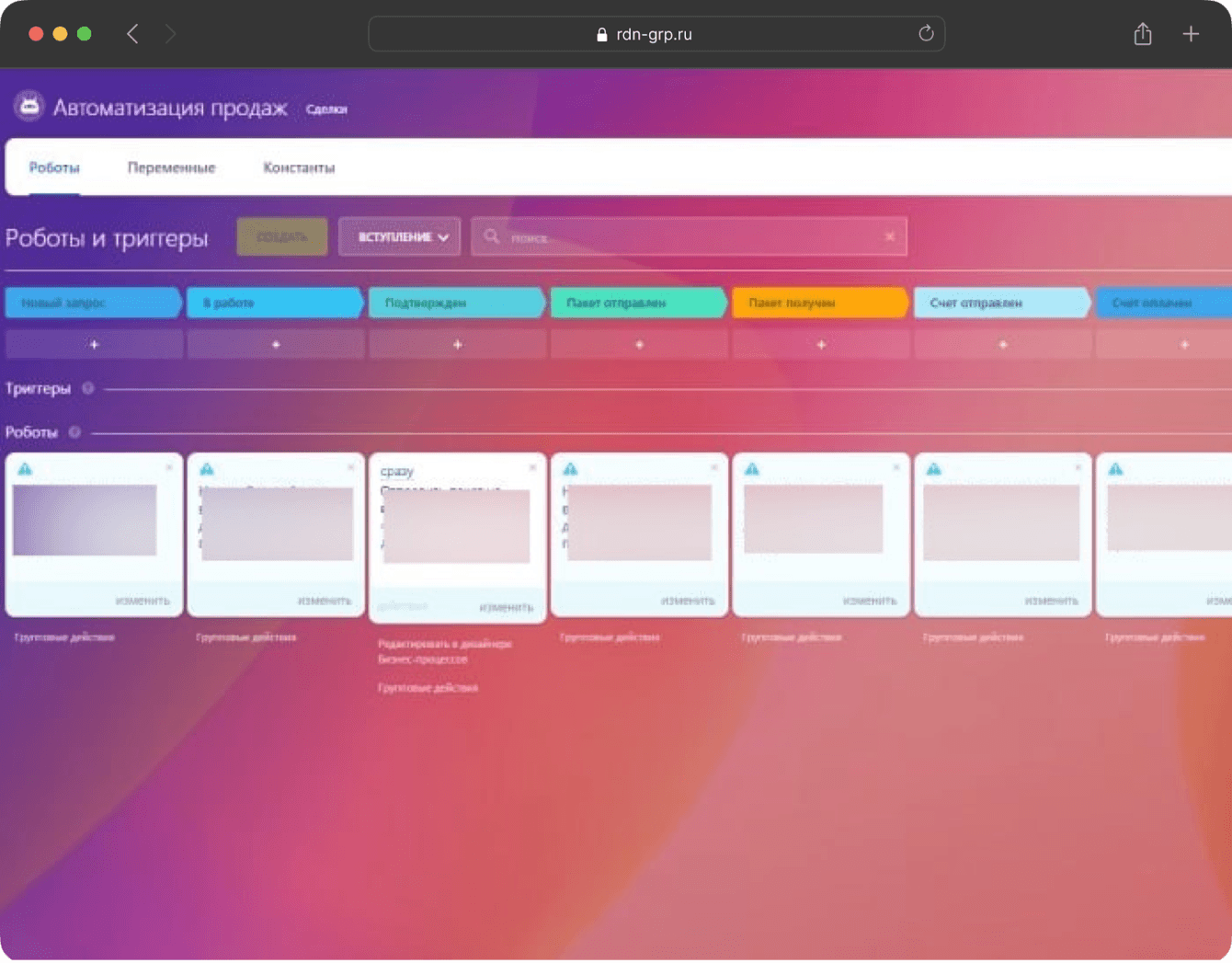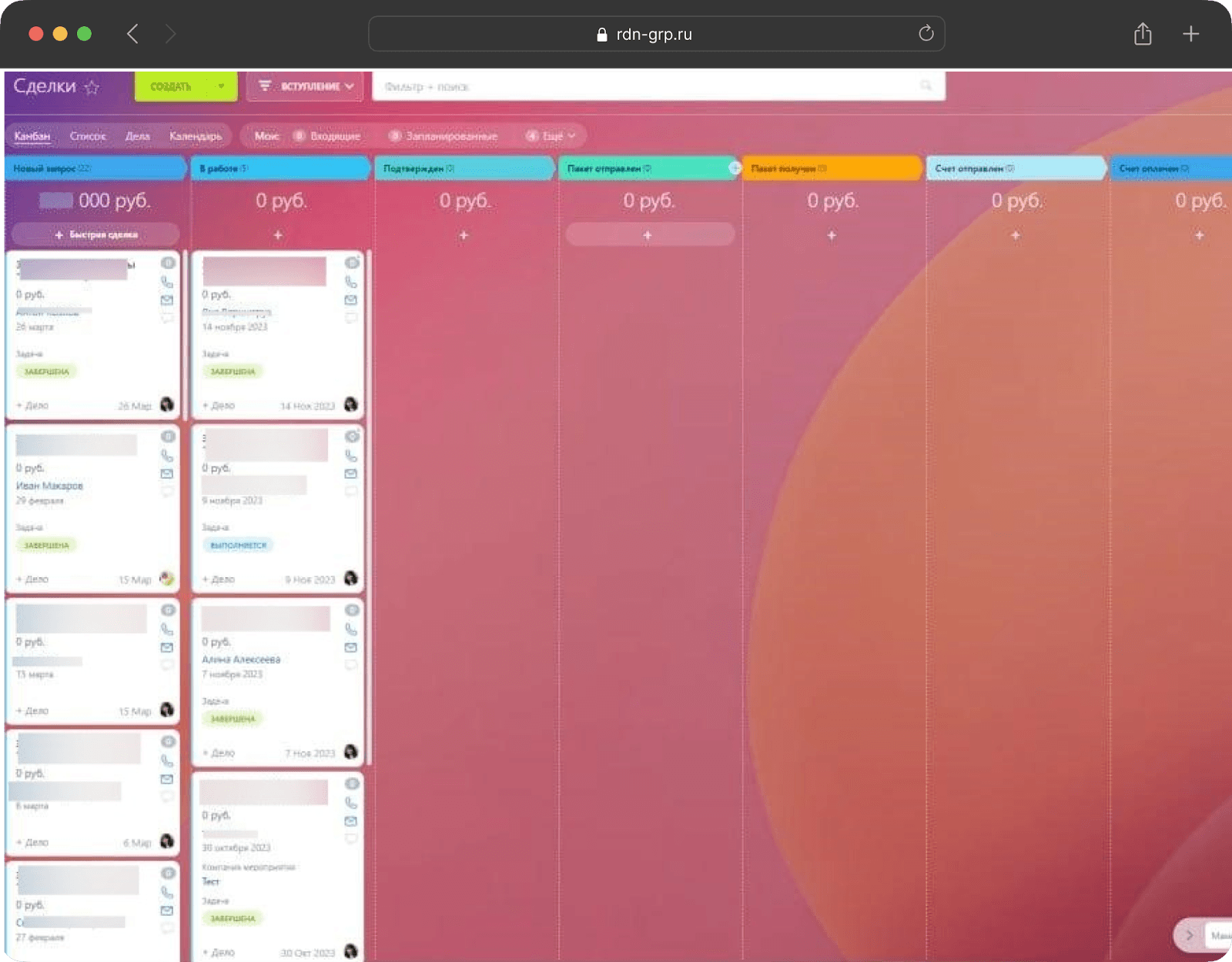 Ранее RDN Group внедряла для АИДТ платформу Битрикс24. Для решения данных задач ИТ-специалисты настроили воронки, исходя из технического задания.