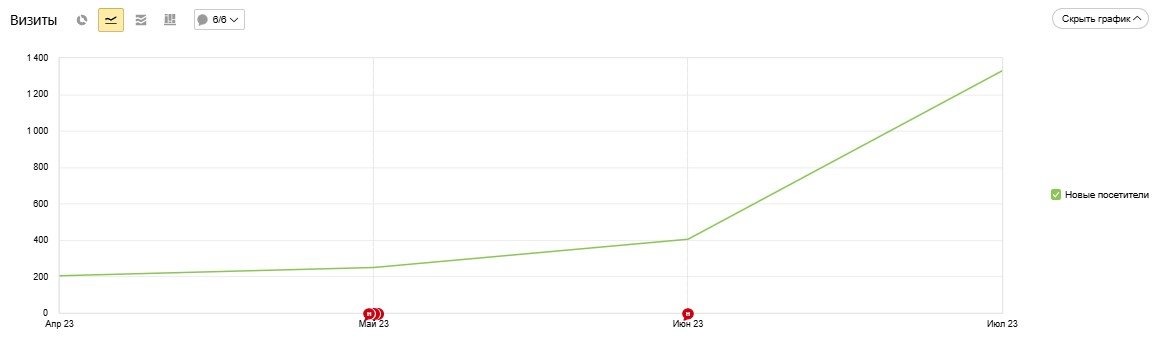 За период продвижения количество посетителей выросло в 6 раз от 205 до 1330 человек всего за 4 месяца.