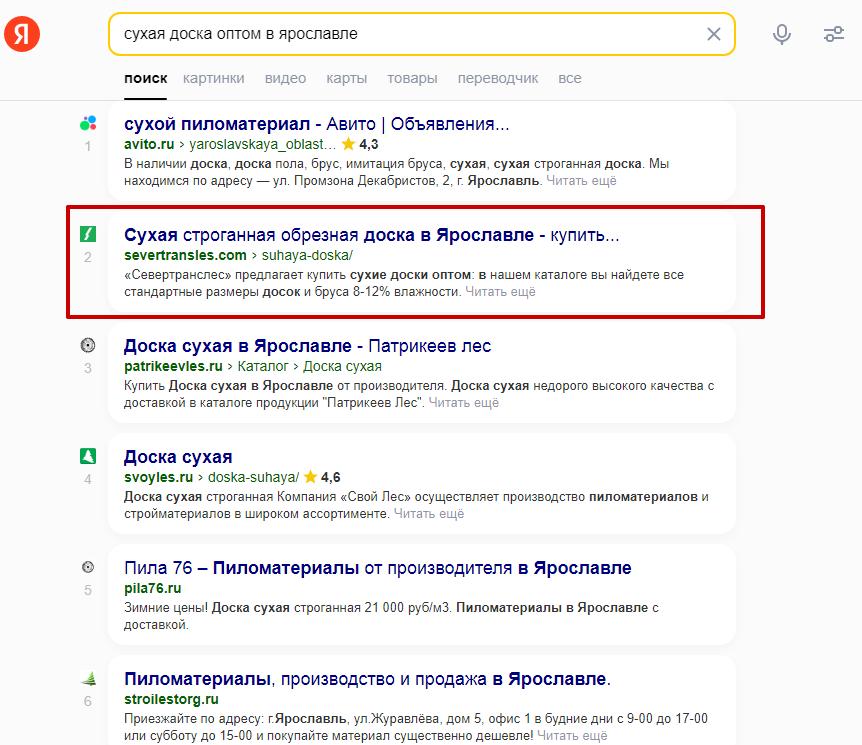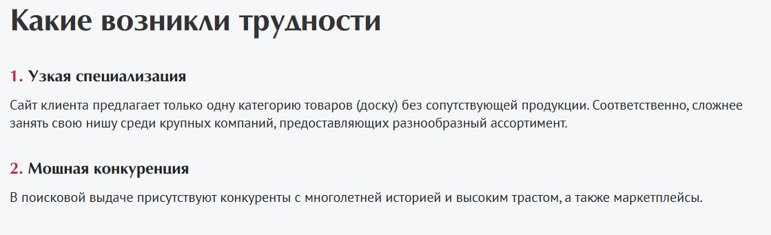 5. Оптимизация полностью отсутствовала. Потребовалась комплексная работа с заголовками, метатегами товарных категорий, описаниями.