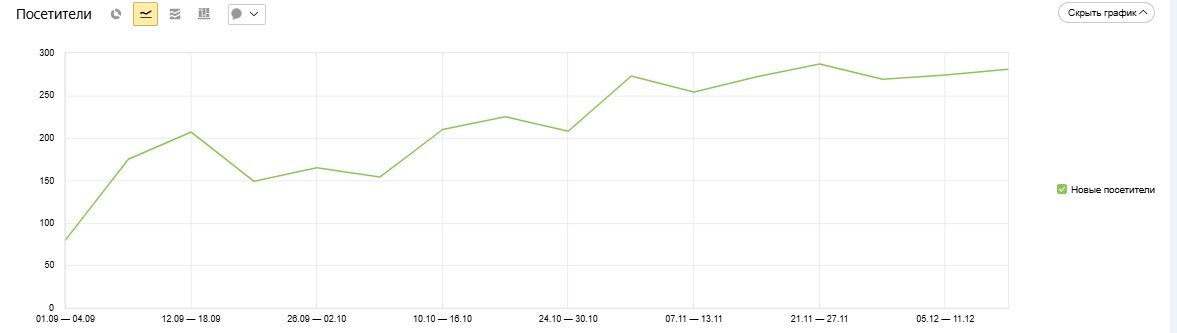 Увеличилось количество новых посетителей, что показывает график по неделям