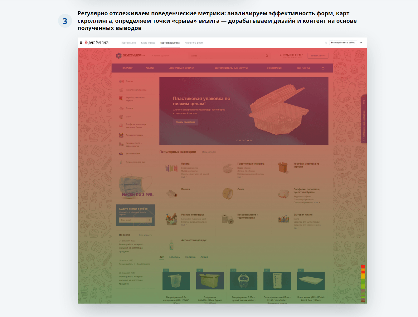 Компания Дельта занимается переориентацией нашего интернет-магазина на сегмент B2B. Проводится большая работа с карточками товаров и функционалом сайта. Было подобрано обширное семантическое ядро с общими и специальными B2B запросами. Мы отслеживаем выход сайта в ТОП-10, практически все запросы сегодня на первой странице Яндекса. Бывают разовые падения позиций, но общий трафик сайта от этого не страдает. Мы довольны сотрудничеством.