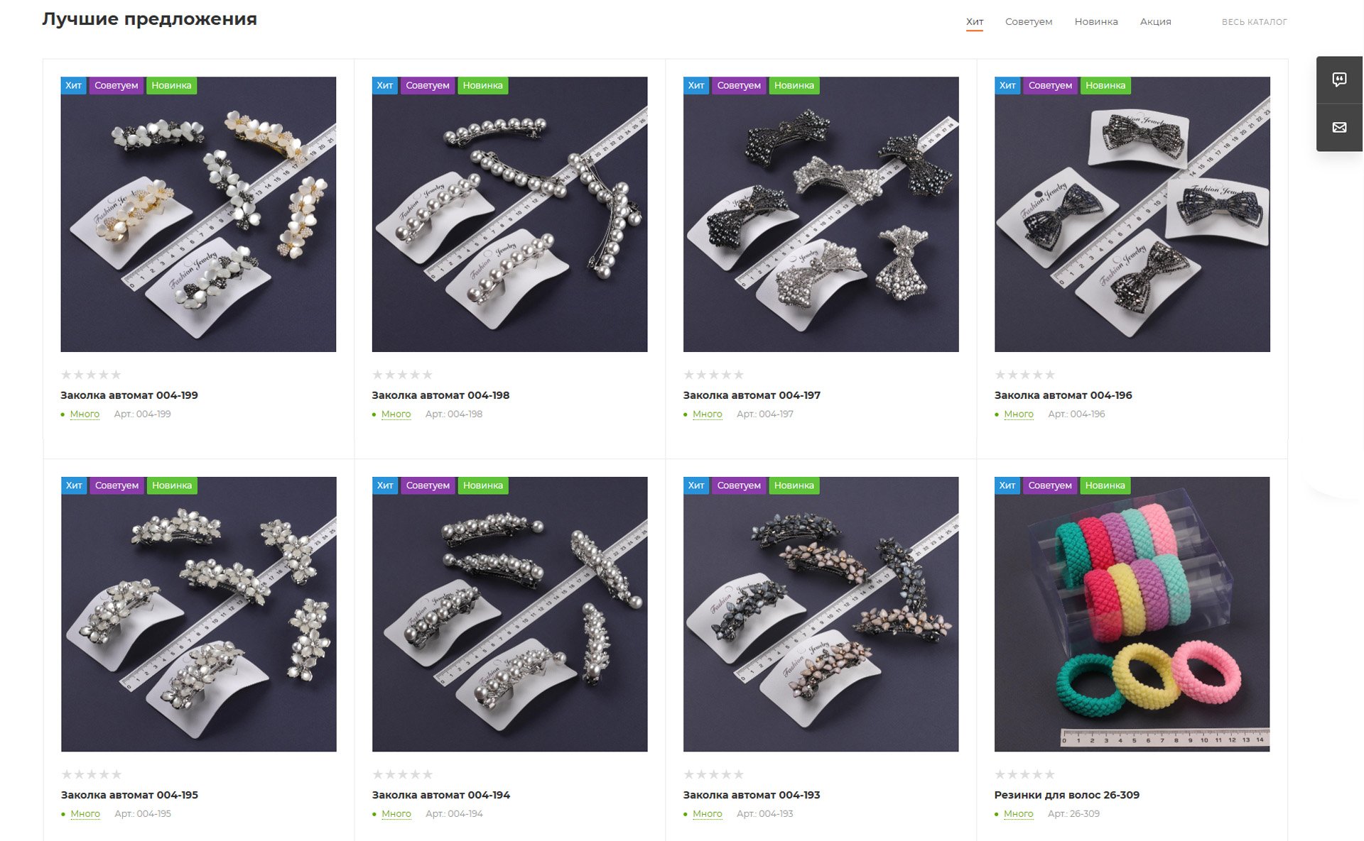 Блок «Лучшие предложения» — это не просто акции. Это витрина хитов: новинки, которые раскупают за час, сезонные коллекции, которые трендят, и спецпредложения с невероятной маржой. Он не просто привлекает взгляд — он запускает импульс: «Взять сейчас, пока есть». Конверсия растёт, потому что клиент видит — здесь не просто товары. Здесь — возможности.