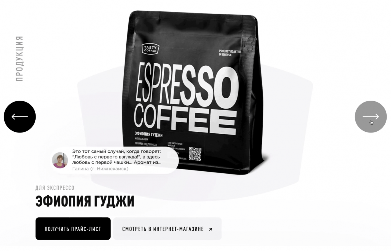 На сайте каждый покупатель получает подробную информацию по каждому сорту кофе и личную рекомендацию.