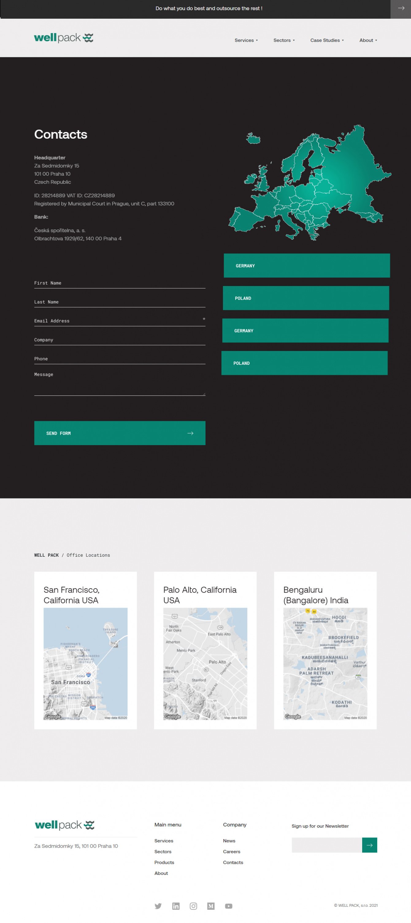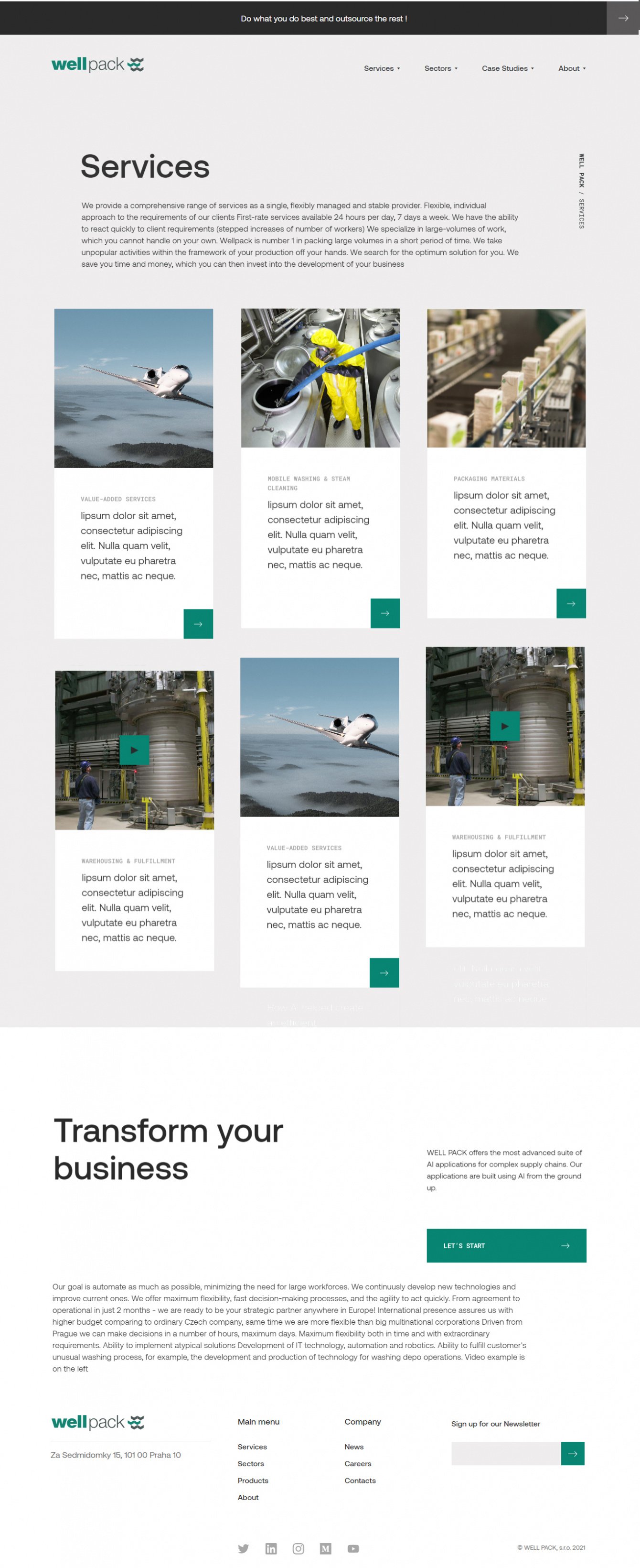 Создать новый сайт компании WellPack описывающий услуги компании на всех основных европейских языках. А также показать миссии и ценности компании.
