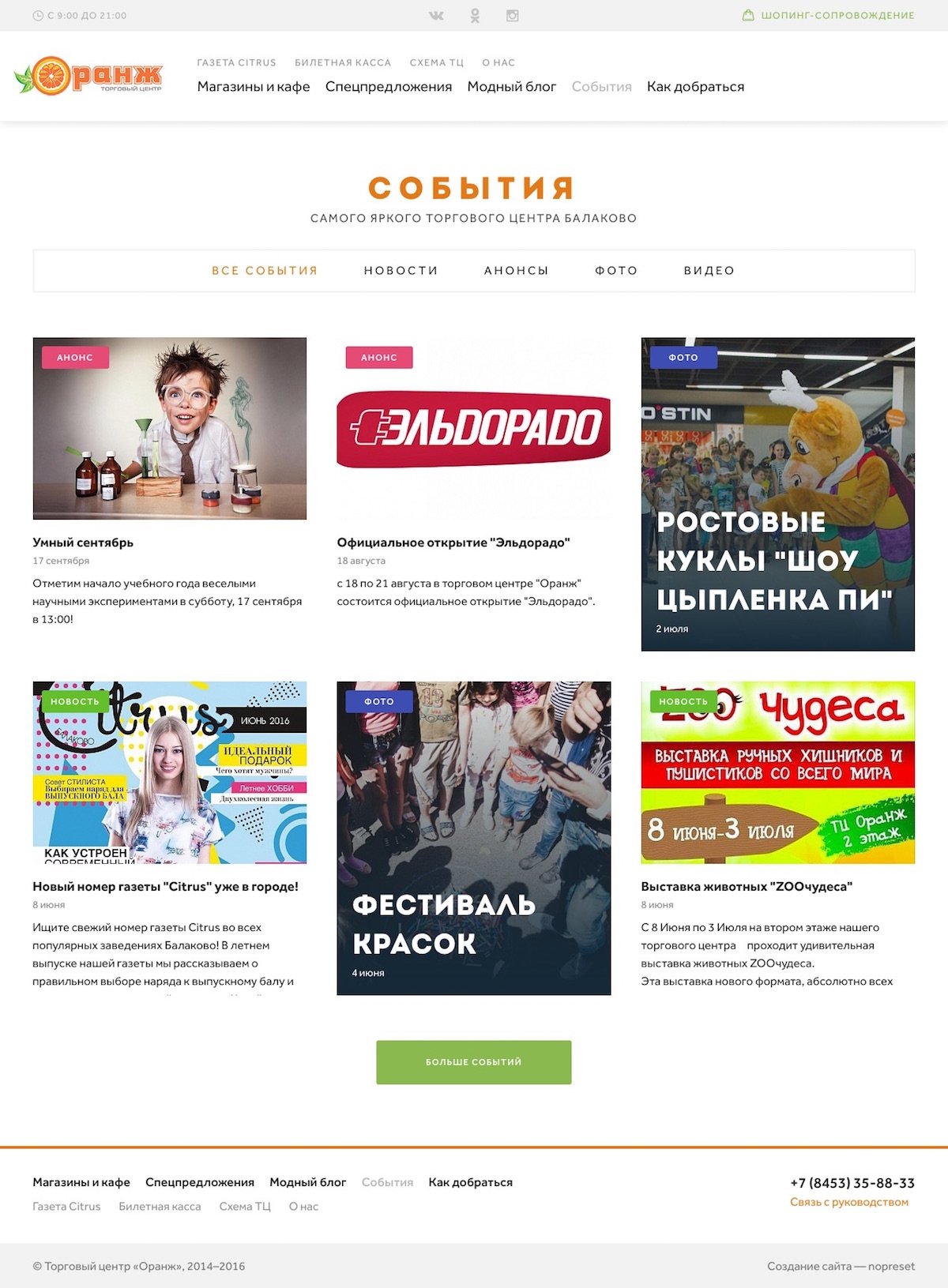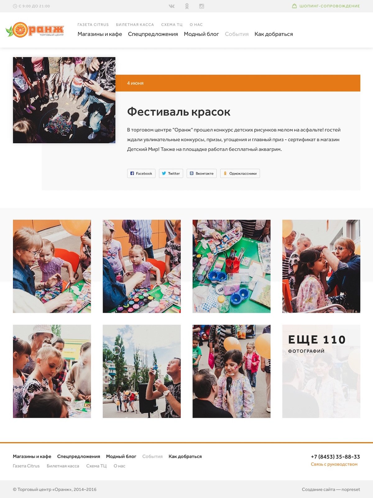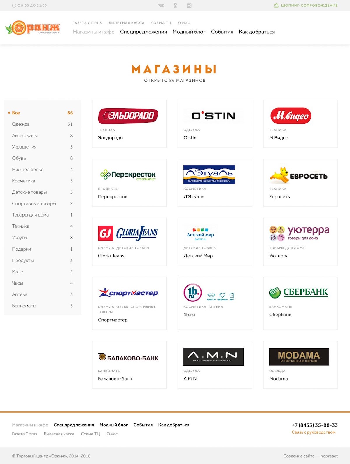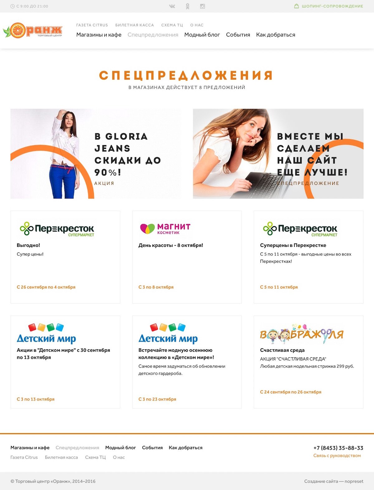 Торговый центр «Оранж» выражает свою благодарность ООО «Нопресет» за выполненный объем работ по разработке и поддержке корпоративного сайта.