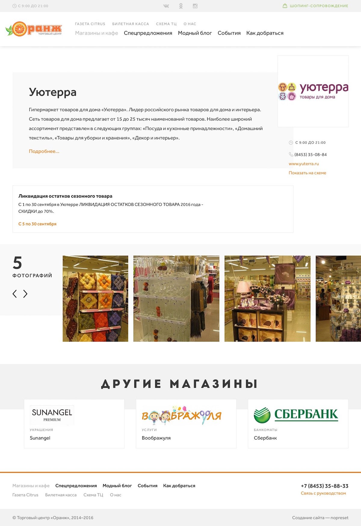 Разработать корпоративный сайт для торгового центра «Оранж» в г. Балаково (Саратовская область).