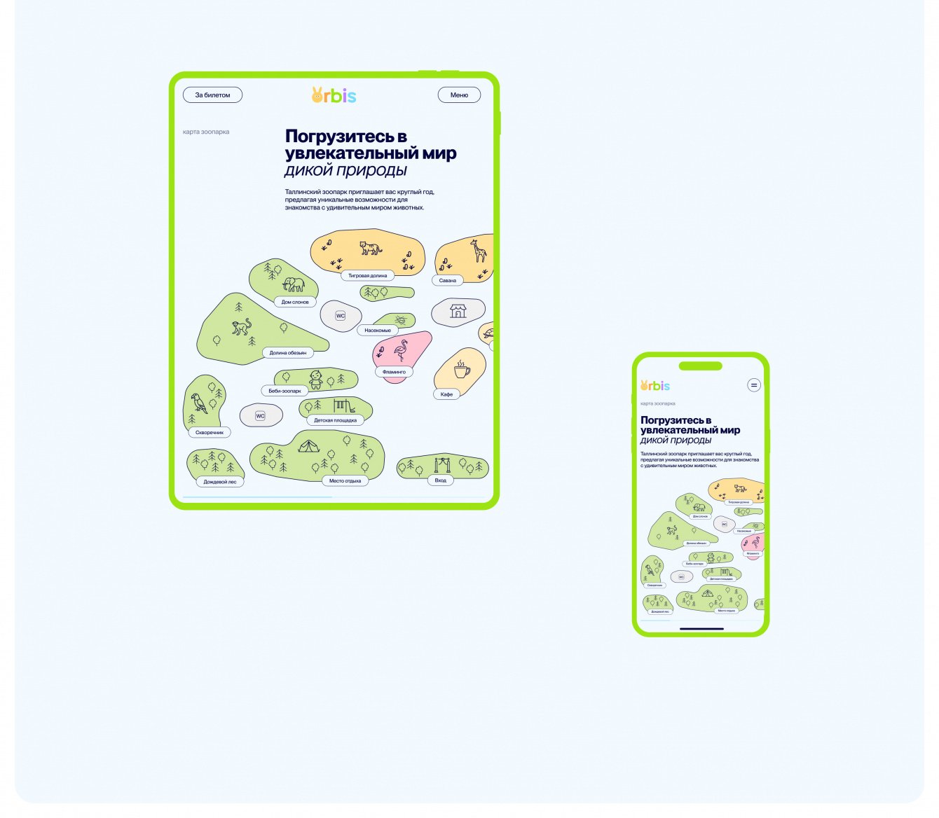 В этом проекте мы сделали редизайн для сайта Таллинского зоопарка. Конечно же, не обошлось без мощнейшего ребрендинга, в котором мы отразила все основные преимущества зоопарка: пристальное внимание к содержанию животных и деятельность в направлении повышения культуры детей и взрослых в вопросах охраны природы.