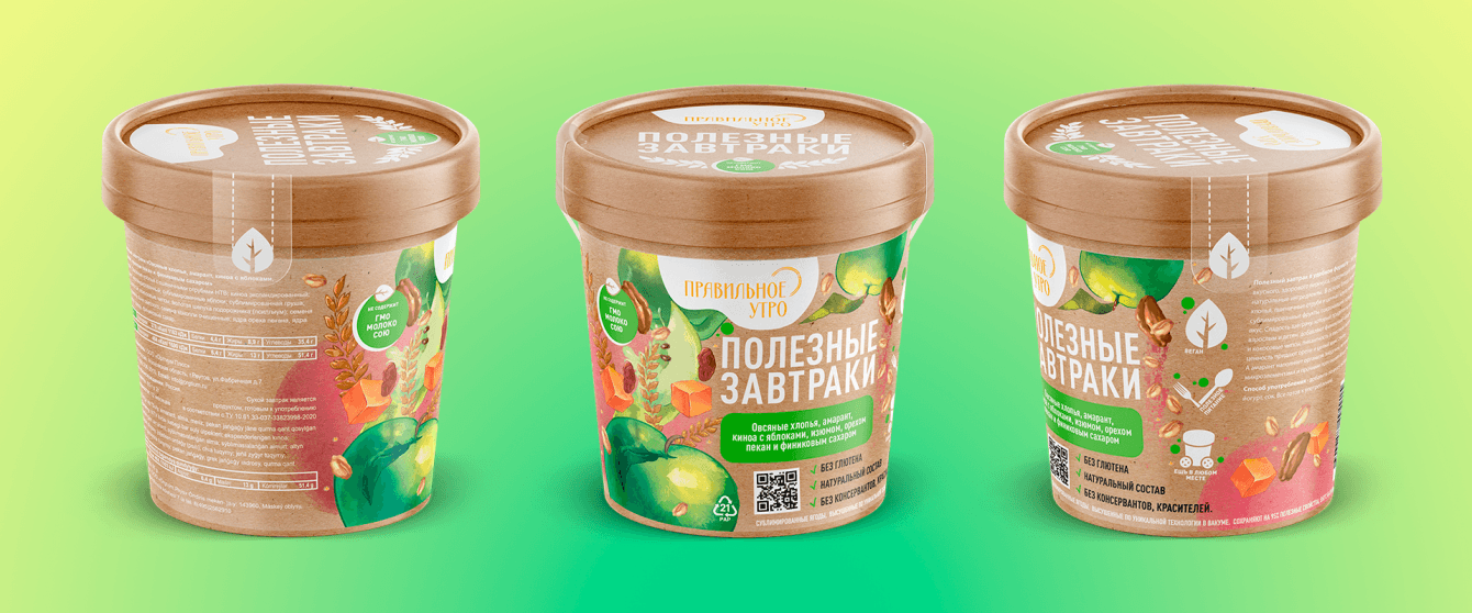 Разработать и создать дизайн упаковки для здоровых и полезных завтраков, который будет привлекать потребителей. Сама тара является базисом для ориентирования – она экологичная в переработке, надежная в транспортировке, уникальная на полке, приближенная к природе на вид.