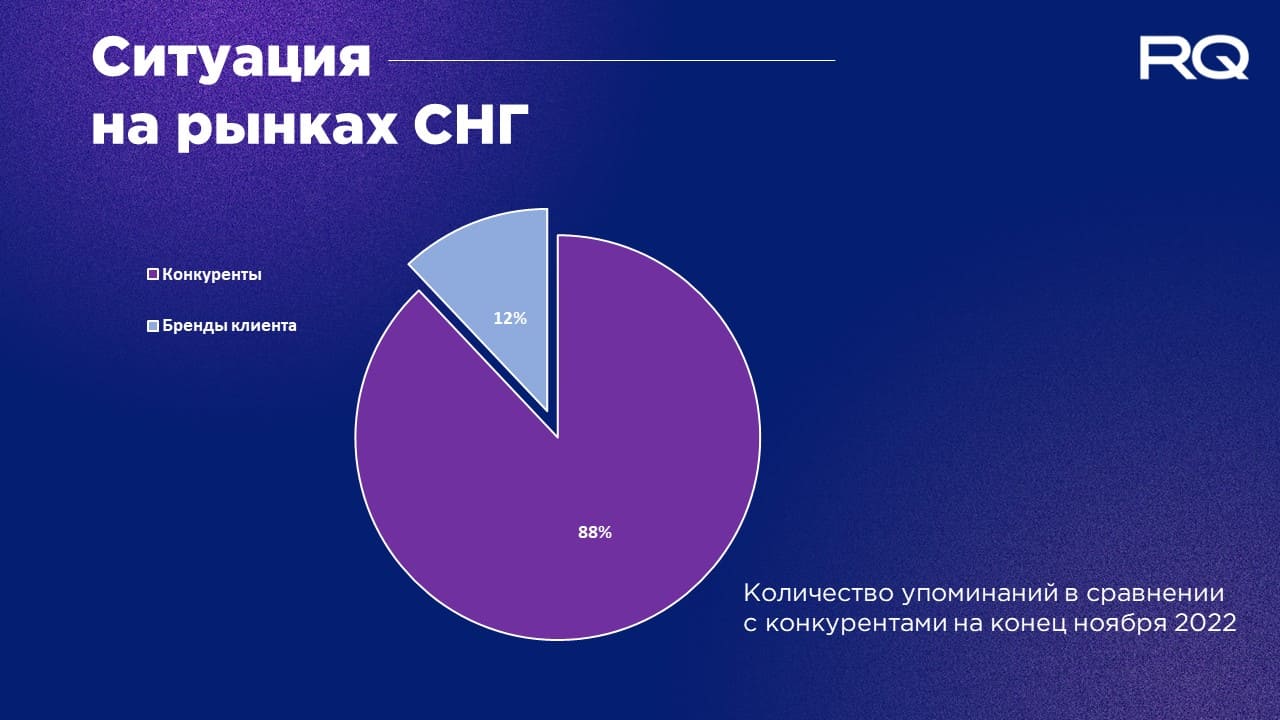 В сравнении с релевантными конкурентами по количеству упоминаний share of voice клиента в странах СНГ была 12%.