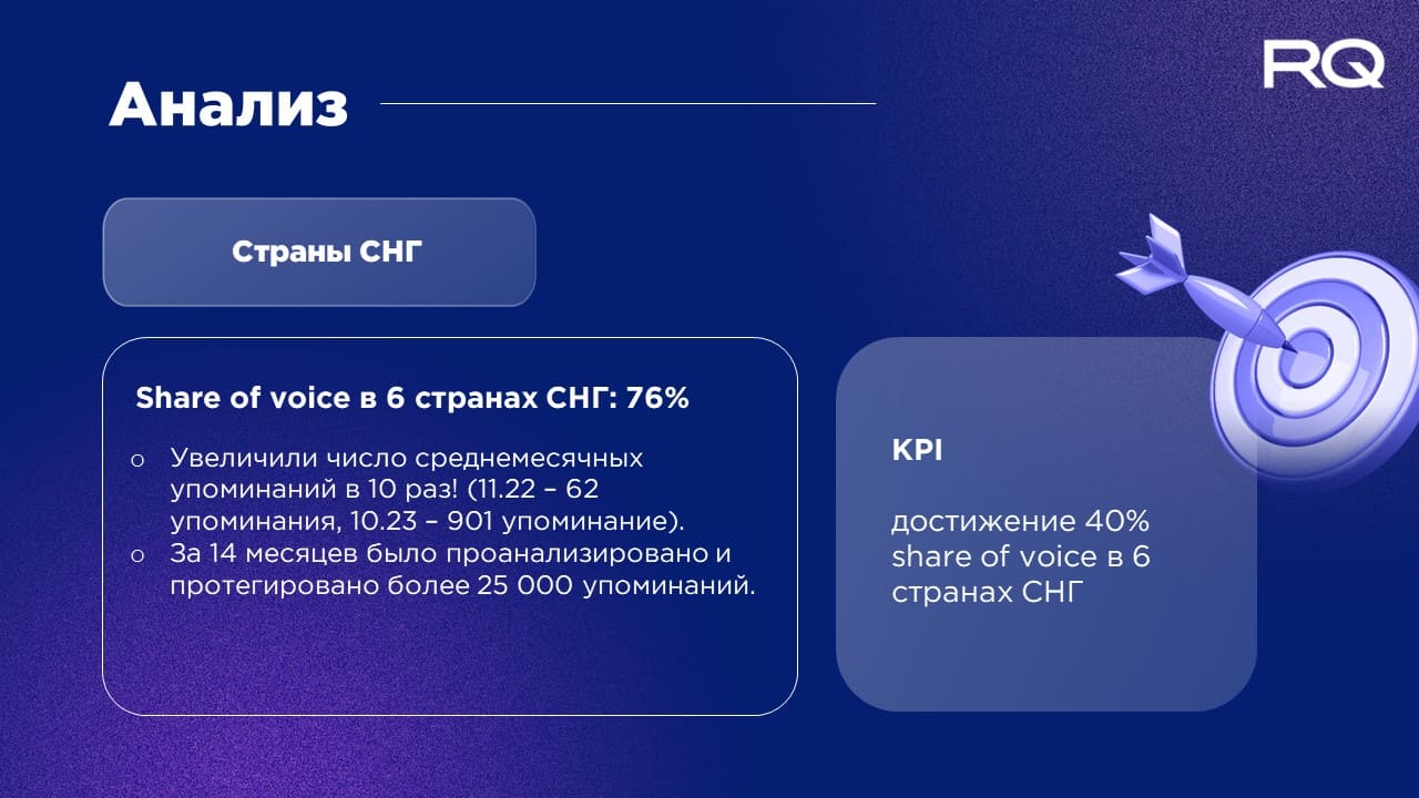KPI проекта: достижение 40% share of voice в 6 странах СНГ.