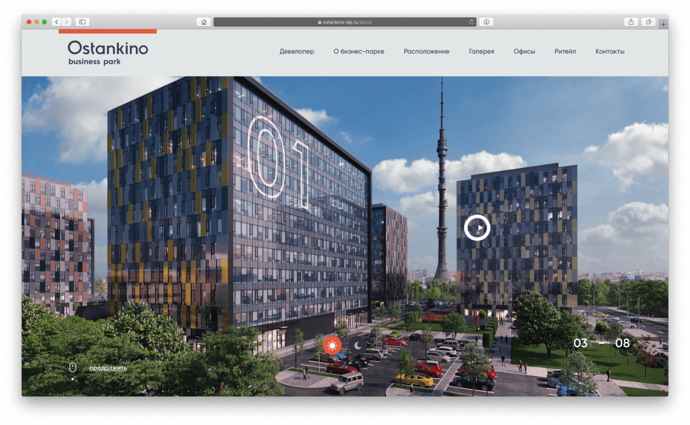 Сайт OSTANKINO – представляет собой интерактивный веб-портал, который задает тон и ритмику бизнес-содержанию проекта.
