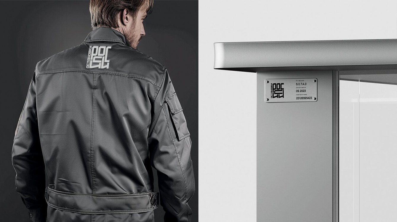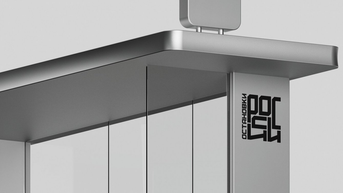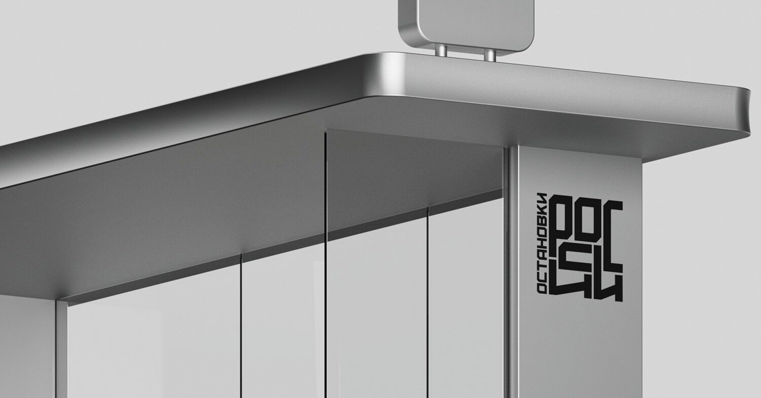 Мы создали шрифтовой логотип, в котором мы отразили компактность, традиционность и стабильность. Разместили название «Остановки России» в квадрате без границ таким образом, что буквы растягиваются и сужаются в зависимости от их расположения. Сами буквы логотипа выполнены в цвете «стали», что прямо отсылает к материалу, из которого изготовлены остановки.