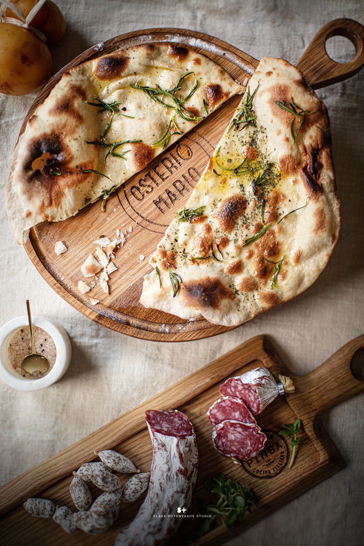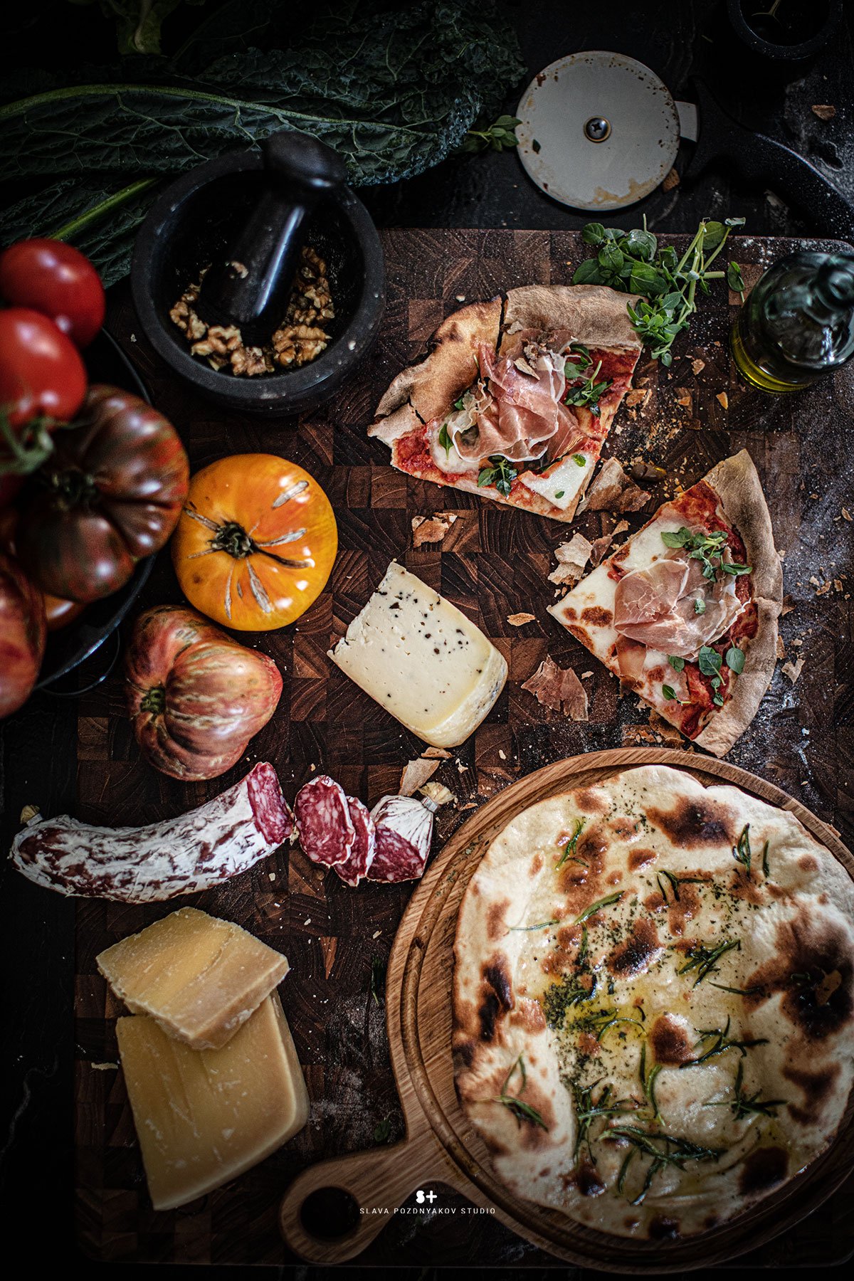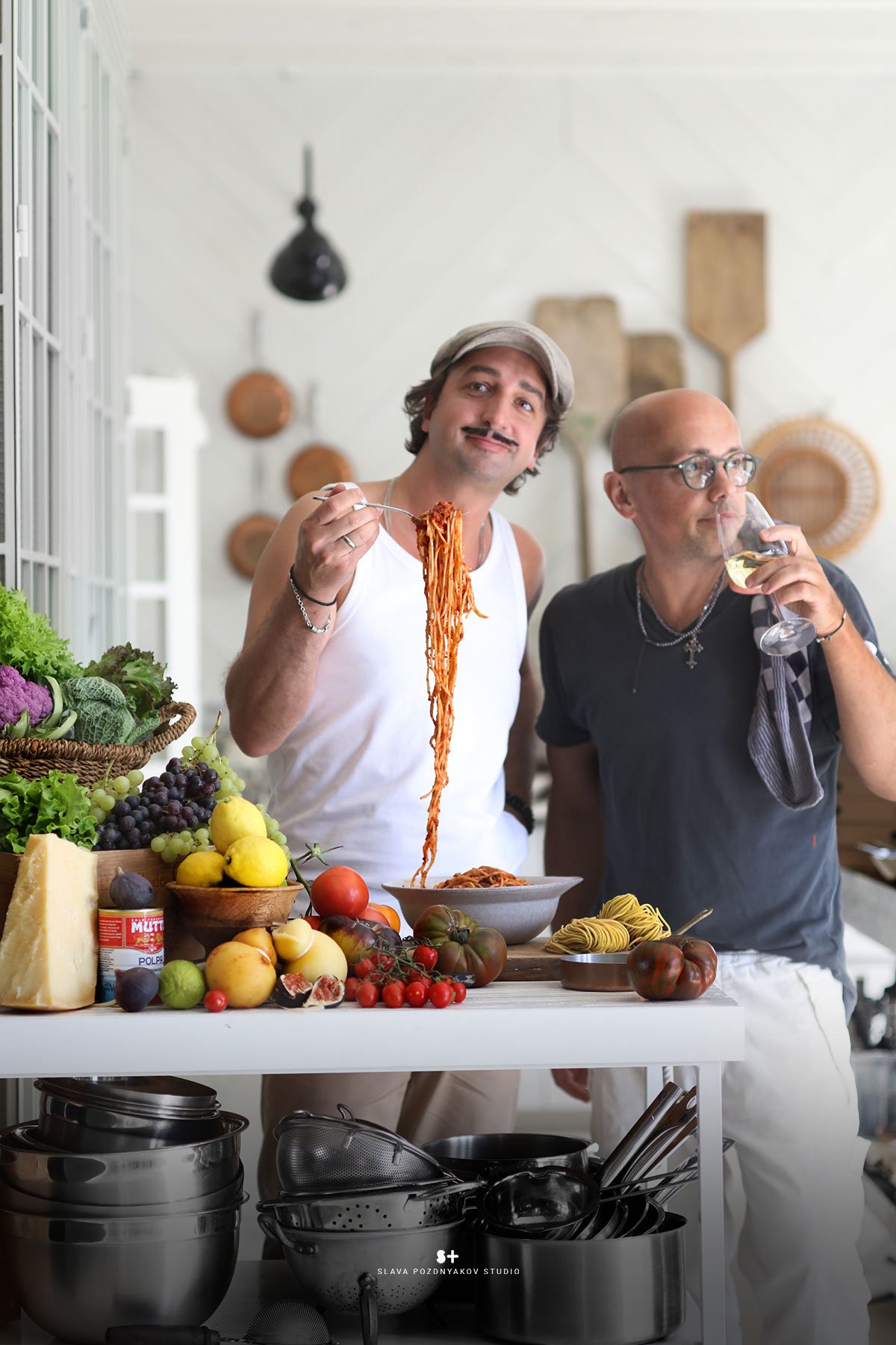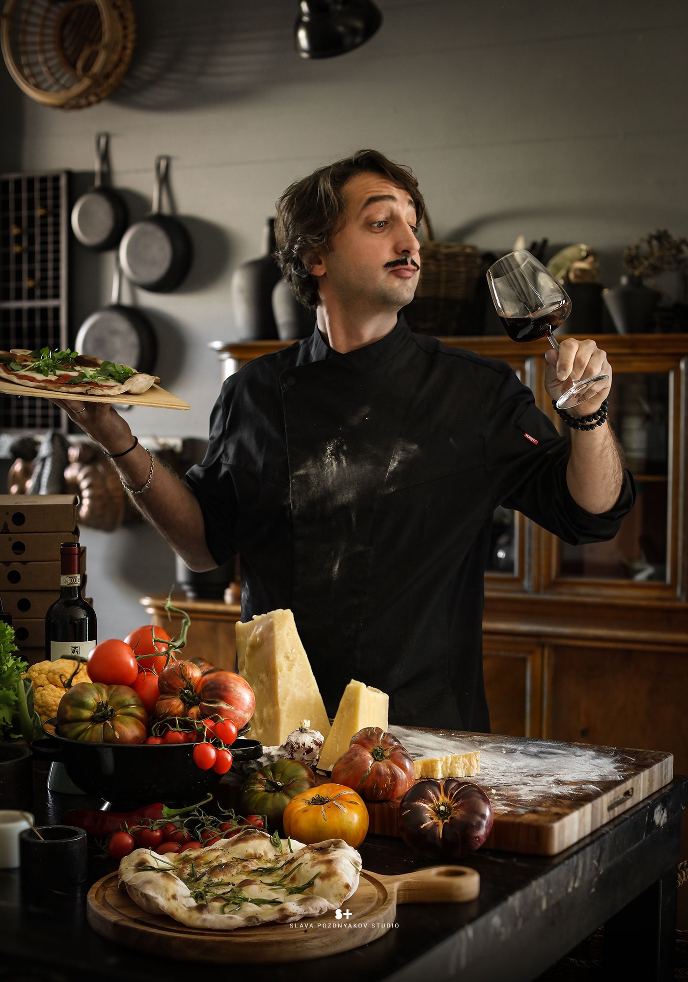В результате нашей работы были сняты продуктовые постеры и портреты в интерьере, выдержанные в итальянском стиле. Это отразило дух итальянского шеф-повара, который специализируется исключительно на итальянской кухне и подаче блюд. Моя миссия заключалась в том, чтобы передать эту тему через создание интерьера, фона и атмосферы в кадре, а также в подборе реквизита и продуктов для фотосессии. Часть реквизита была взята с моей кухни-студии, которая была стилизована в соответствии с этим проектом.