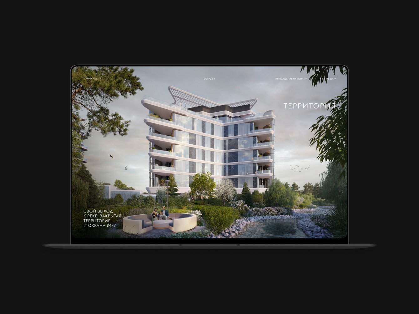 Результат — продвижение по сайту приносит тактильное удовольствие. Отзывчивый интерфейс приглашает изучать детали, возвращаться к ключевым элементам, таким как карта, и открывать новые преимущества “Остров X”. Пользователь воспринимает тщательную выкройку сайта и внимание к UX как залог безупречности жилого комплекса.