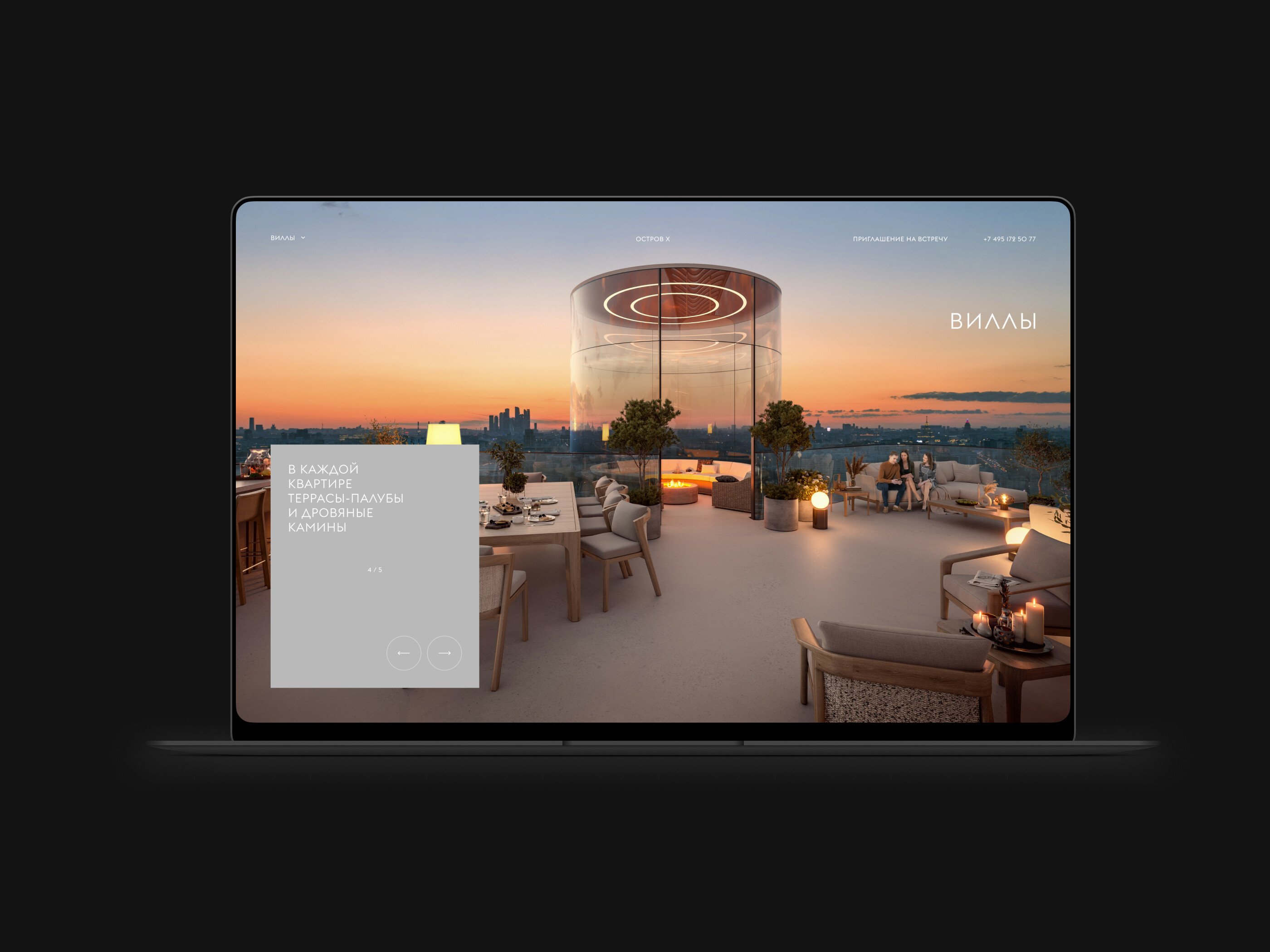 Получился сайт, который восхищает технологичностью, роскошью и гармоничной эстетикой — именно таких ощущений пользователи будут ожидать от жизни на виллах «Остров Х».