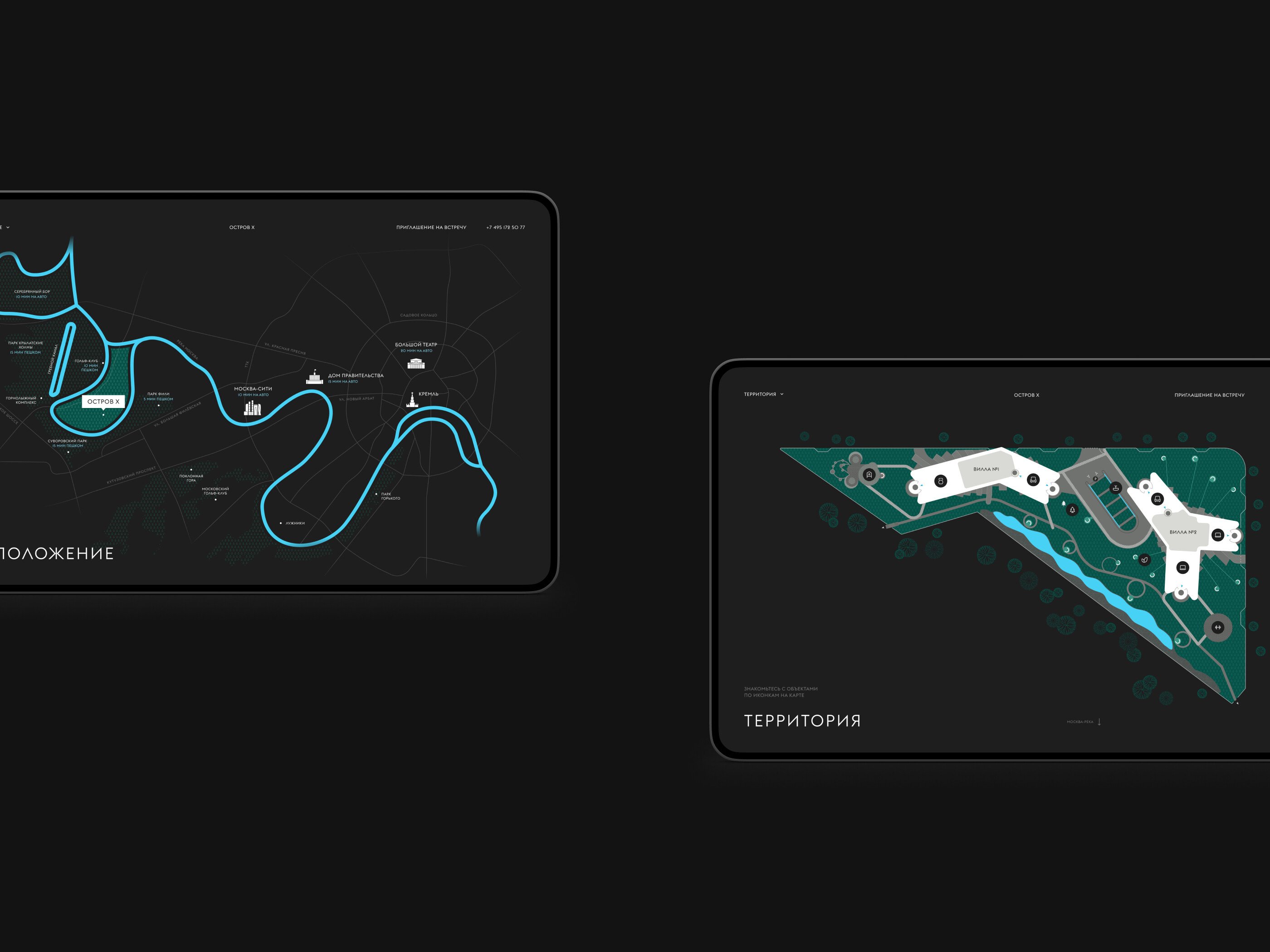 Результат — продвижение по сайту приносит тактильное удовольствие. Отзывчивый интерфейс приглашает изучать детали, возвращаться к ключевым элементам, таким как карта, и открывать новые преимущества “Остров X”. Пользователь воспринимает тщательную выкройку сайта и внимание к UX как залог безупречности жилого комплекса.