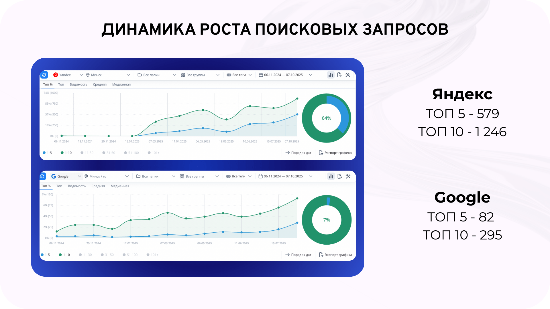 Это позволило составить план по тому, какой % частоты (не путать с кол-вом запросов) нужен в ТОП-1, ТОП-3 и ТОП-5, чтобы выполнить указанный показатель по числу посетителей.