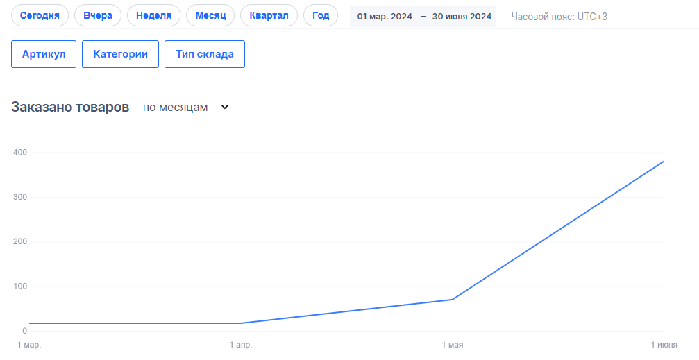 Мы начали работу с магазином в апреле 2024 года. На момент старта суммарный объем продаж составлял 18 единиц товара в месяц: