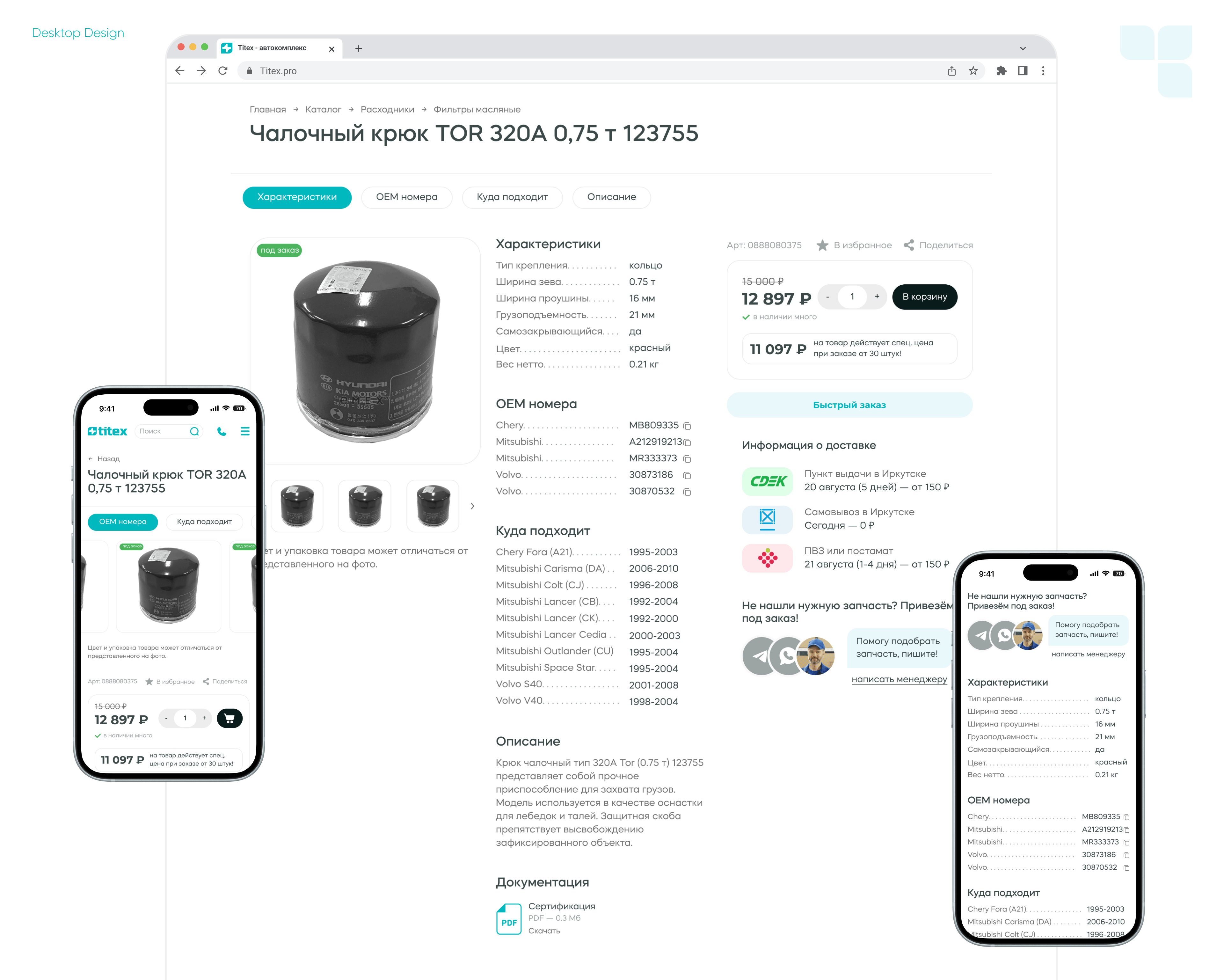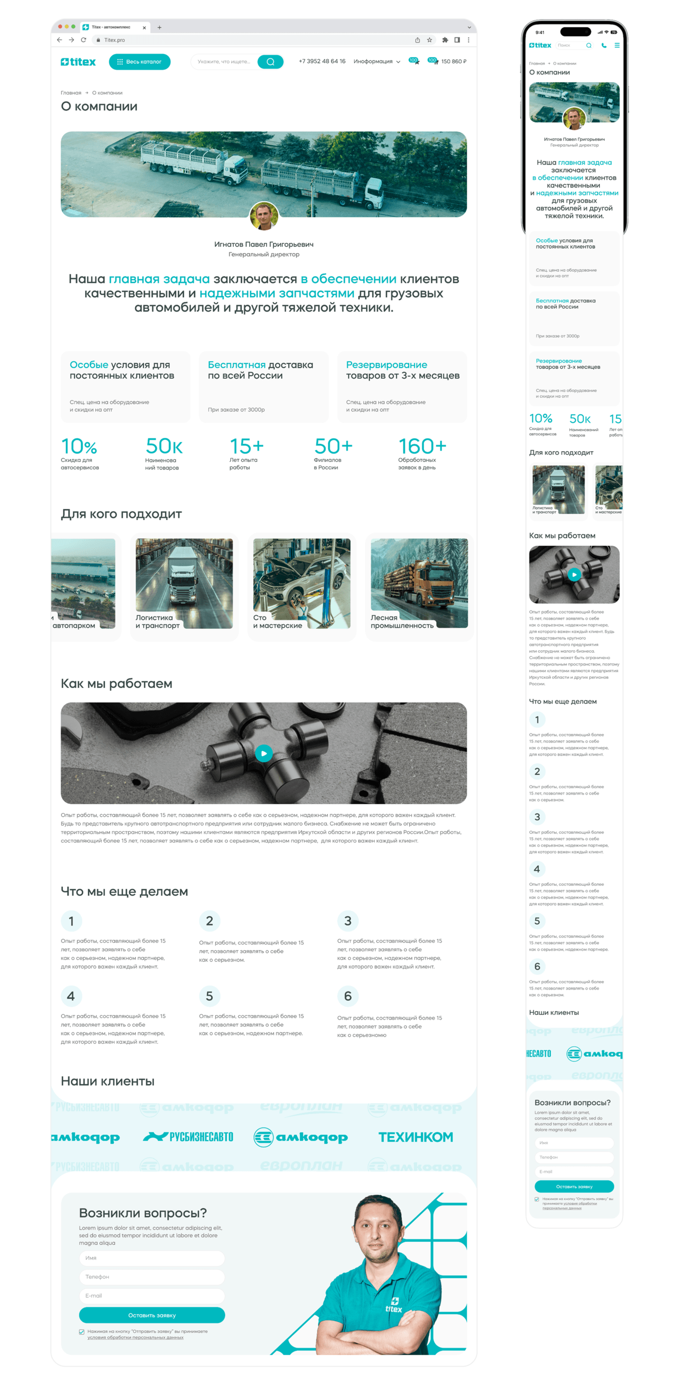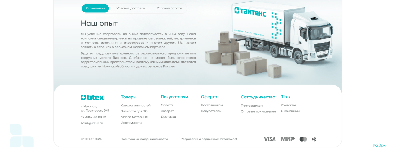 Titex— крупный поставщик автозапчастей для грузовых автомобилей и спецтехники по всей России. Компания работает с оптовыми заказчиками, снабженцами, логистами и кладовщиками, которым важны простота, скорость и точность при подборе деталей.
