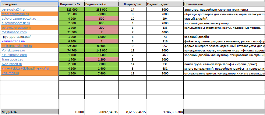 Перед началом активных SEO-работ был проведен тщательный анализ ключевых игроков рынка грузоперевозок и их присутствия в интернете. Были изучены сайты таких компаний, как ГрузовичкоФ, Деловые Линии, ПЭК, Желдорэкспедиция и другие.
