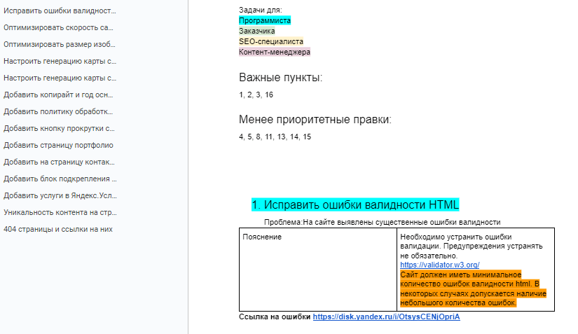 -Техническая оптимизация. Оценивались скорость загрузки страниц, наличие ошибок в коде, корректность файлов robots.txt и sitemap.xml, внедрение структурированных данных и другие технические аспекты.