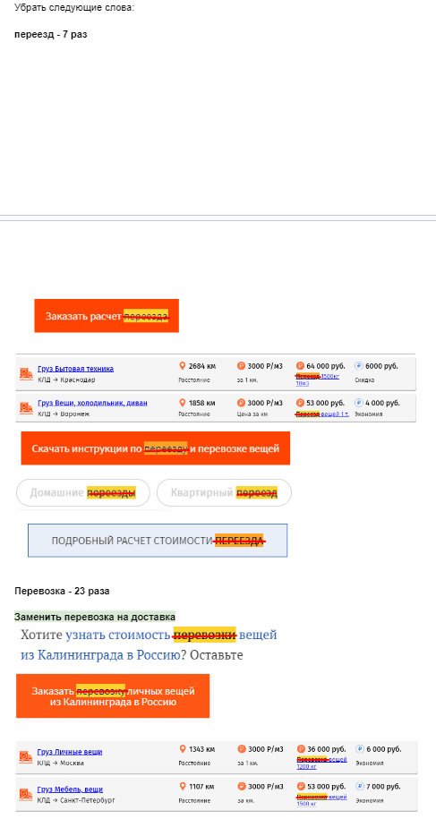 В ходе реструктуризации были выявлены ключевые коммерческие направления компании, требующие более глубокого охвата в структуре сайта. К таким направлениям относились переезды из города в город и перевозки грузов на автомобилях типа "Газель".