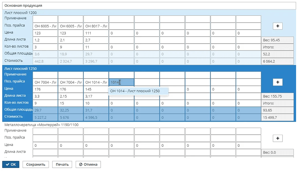 Визуально форма практически не отличается от привычной для менеджеров таблицы. Но за счет автоматизации для ее заполнения нужно совершать меньше действий, чем раньше, а многие ошибки ввода просто исключены.