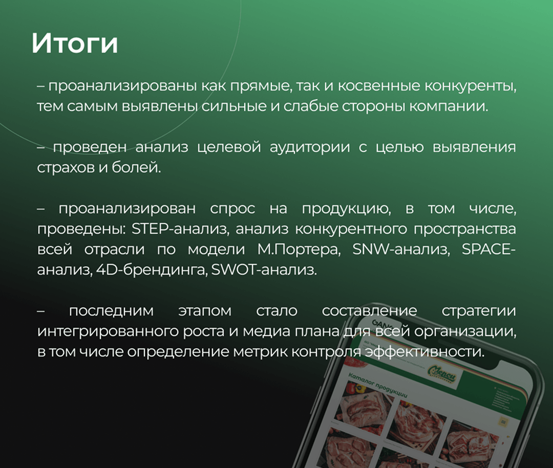 Проект по разработке маркетинговой стратегии для Мерси агро завершён успешно. Мы глубоко погрузились в специфику бизнеса клиента, провели анализ рынка и целевой аудитории, чтобы выстроить чёткий и реалистичный план продвижения. Получилась структурированная стратегия с конкретными шагами и акцентом на рост. Гордимся результатом и благодарим клиента за доверие и открытость в работе!