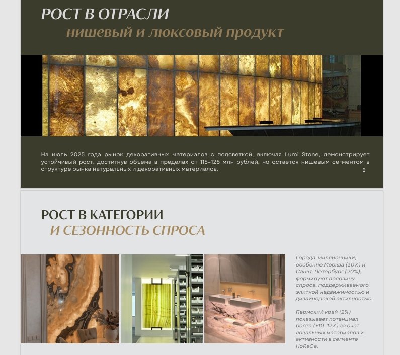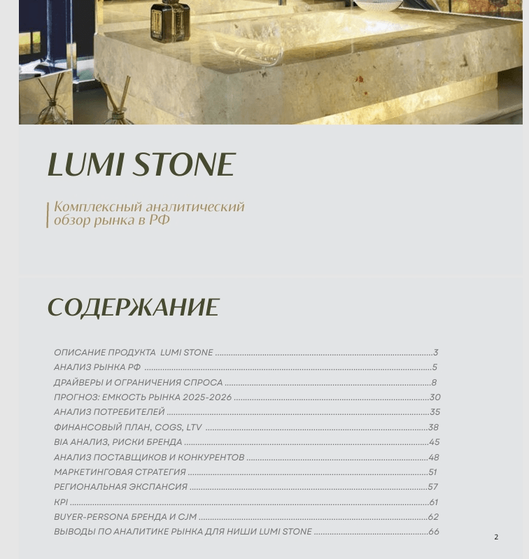 Клиент — диллер изделий из натурального и ненатурального камня (плитка, столешницы, облицовочные элементы) из Перми. Компания имела локальное присутствие в регионе, но планировала масштабироваться на всю Россию. Перед выходом на новый уровень клиент обратился ко мне за комплексным анализом рынка и разработкой маркетинговой стратегии.