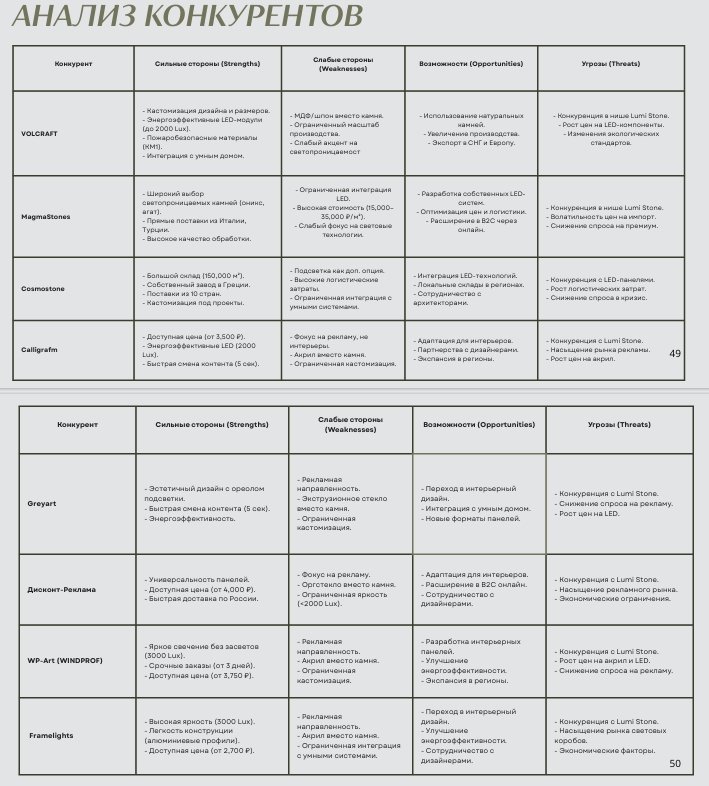 Для клиента я составила подробную карту конкурентов (федеральные и региональные игроки) в нише. Выявила их ценовые диапазоны, продуктовые линейки, сильные и слабые стороны, выручку, а также маркетинговые позиции на рынке.