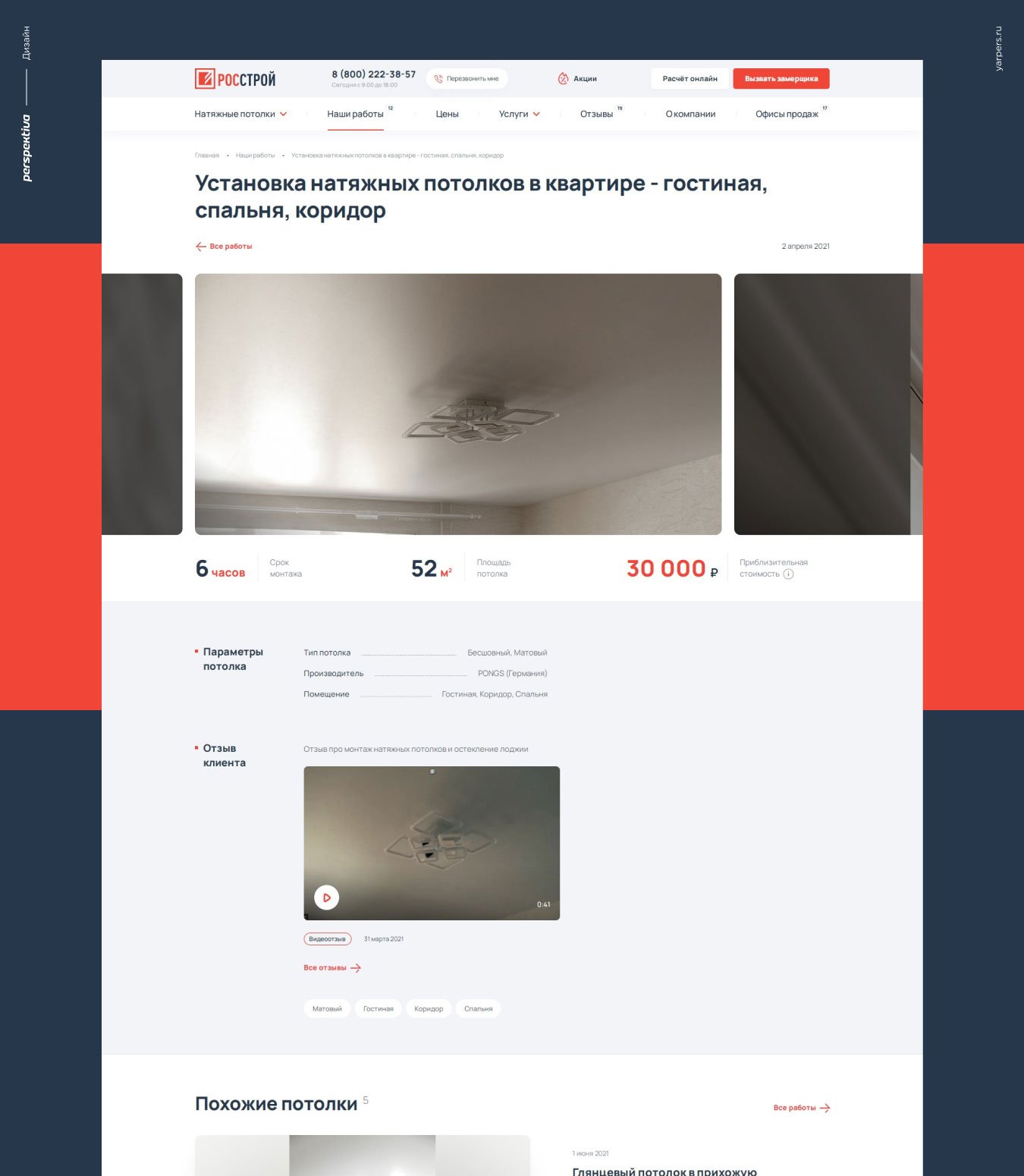 Одно из преимуществ клиента - большое количество монтажных бригад, что ускоряло срок замера и монтажа. Поэтому на сайте сделаны триггеры указывающие на выезд замерщика за 24 часа и монтаж за 3. Последнее обусловлено тем, что все сотрудники компании прошли стажировку и установили не одну сотню натяжных потолков.