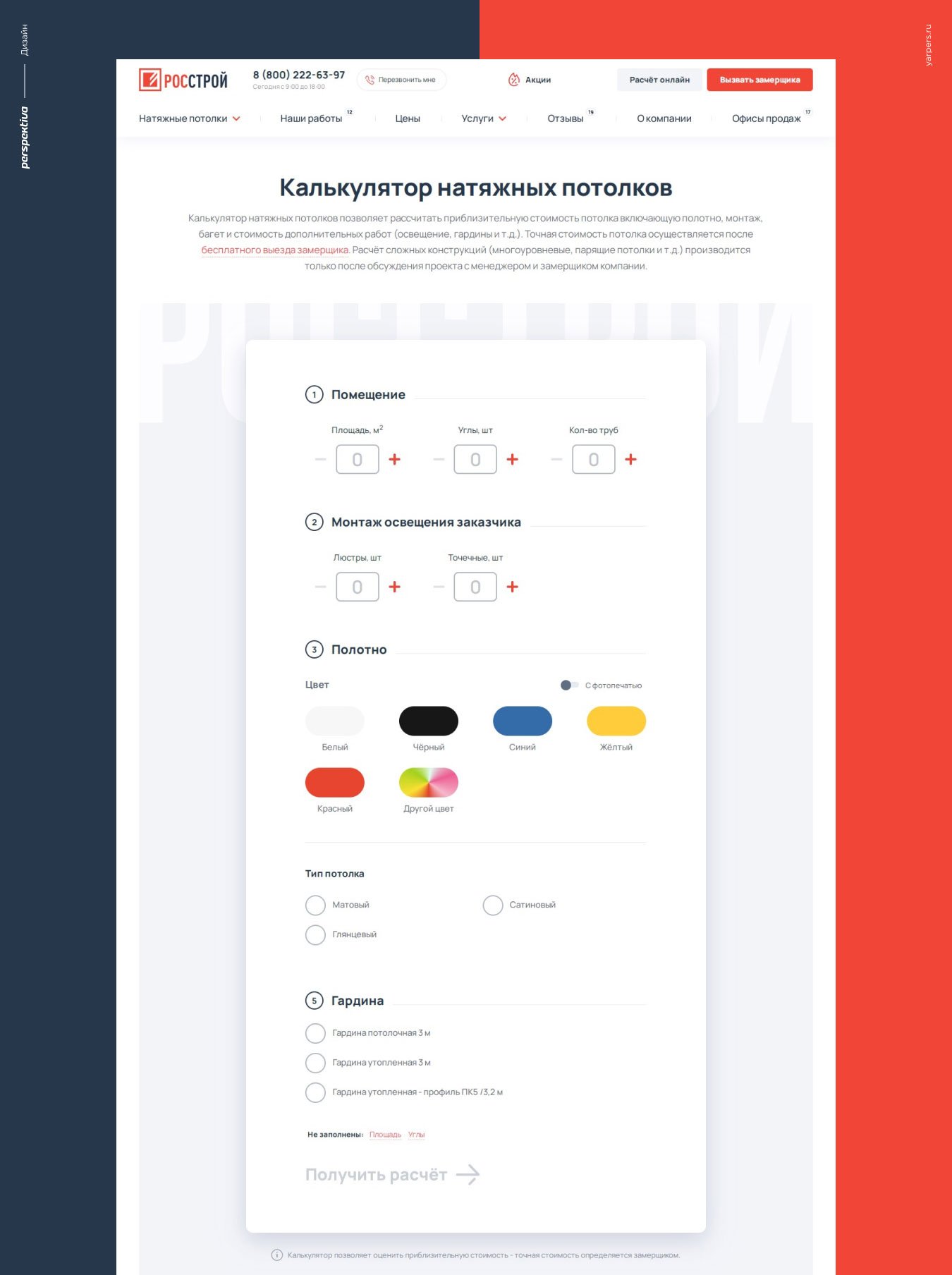 Что бы клиент точно мог понять в какую стоимость ему выйдет потолок, нами был подключён калькулятор натяжных потолков:
