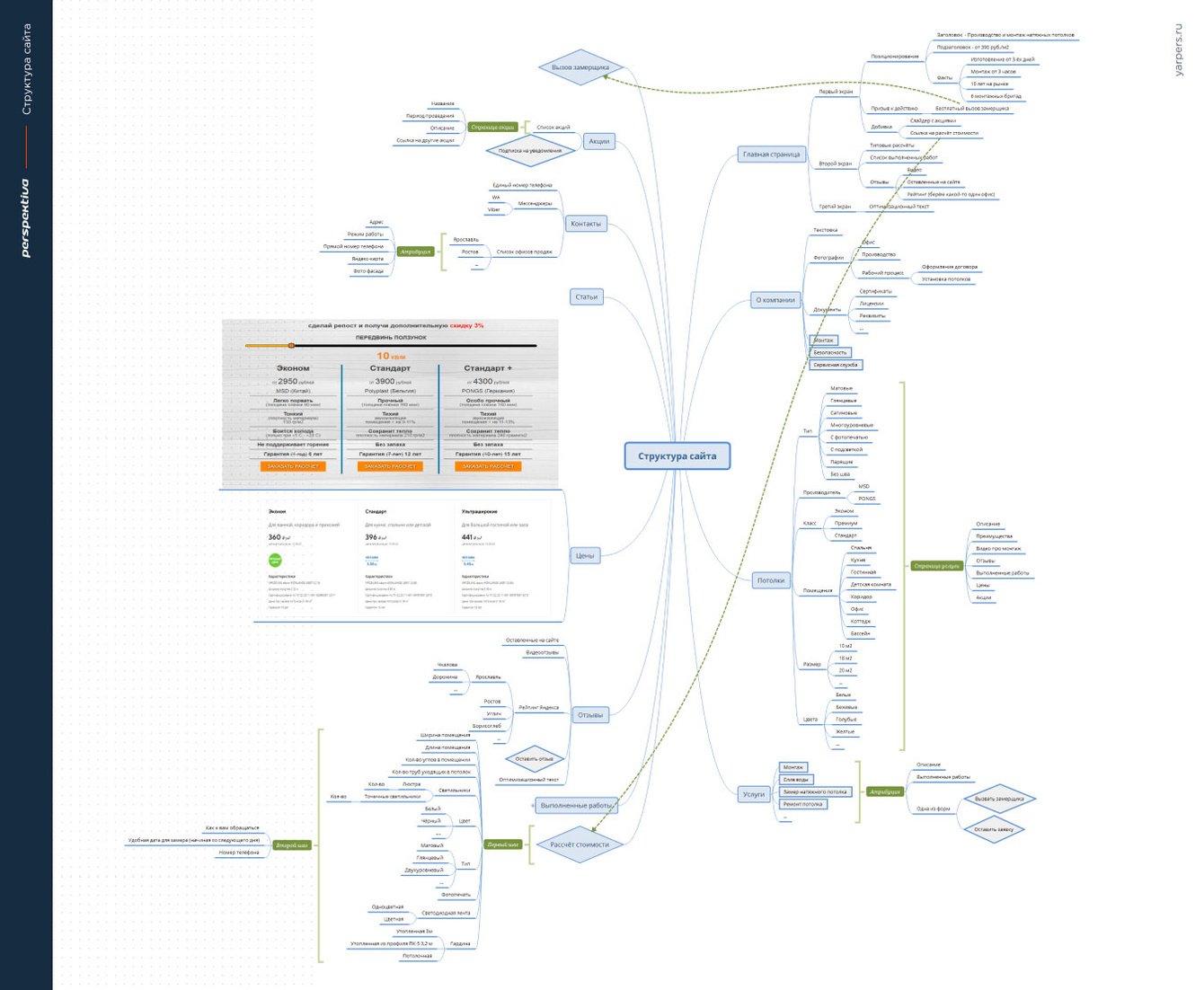 - Сделать сайт удобным и понятным для посетителей (сама по себе тема натяжных потолков всем знакома, но мало кто в ней что-то понимает)