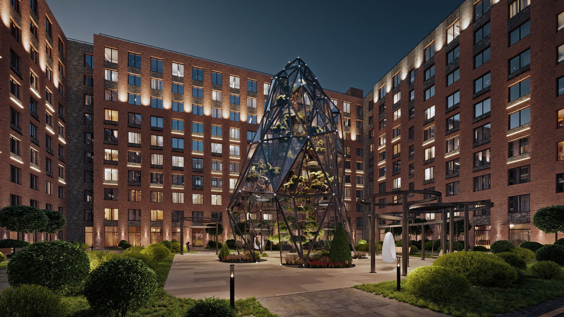 — 16-метровый эко-купол с парящими деревьями,