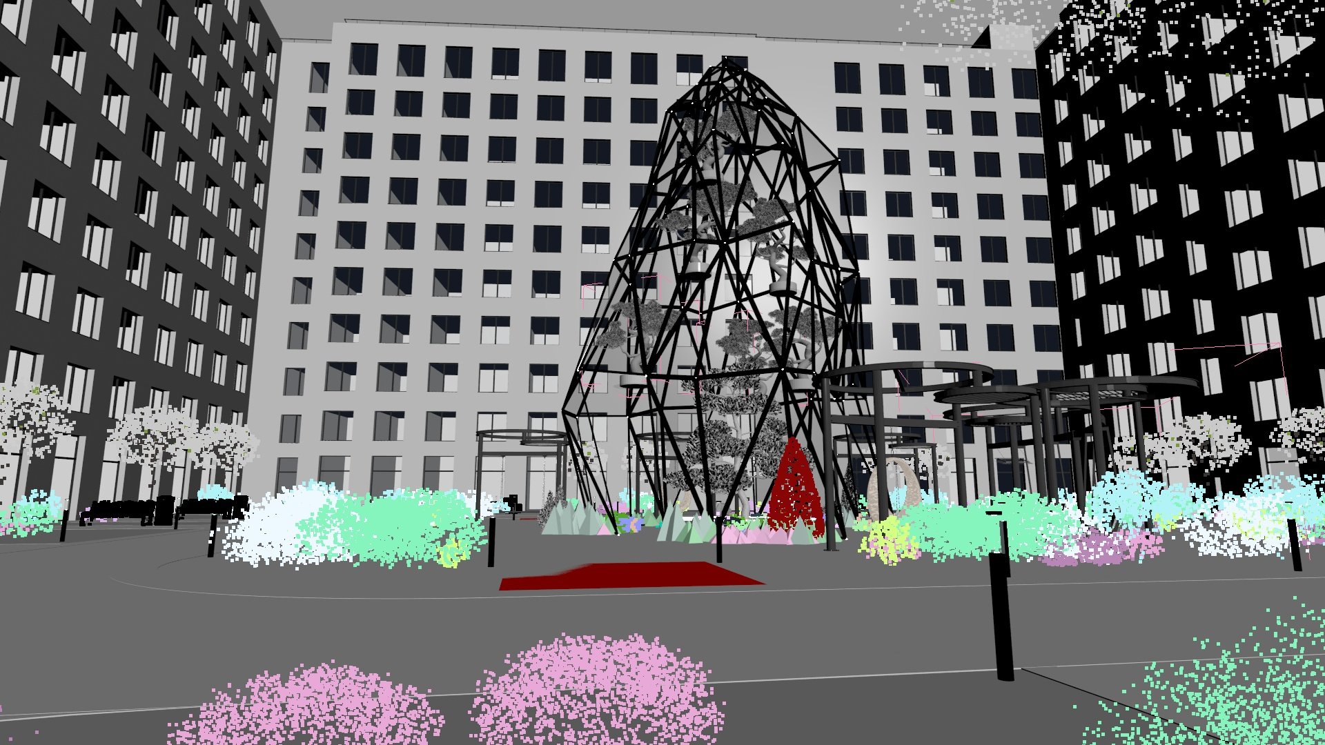 Мы создали огромное количество контента: разработали и визуализировали многие объекты с нуля. Проработали интерьеры, внутреннее освещение, особое внимание уделили благоустройству.
