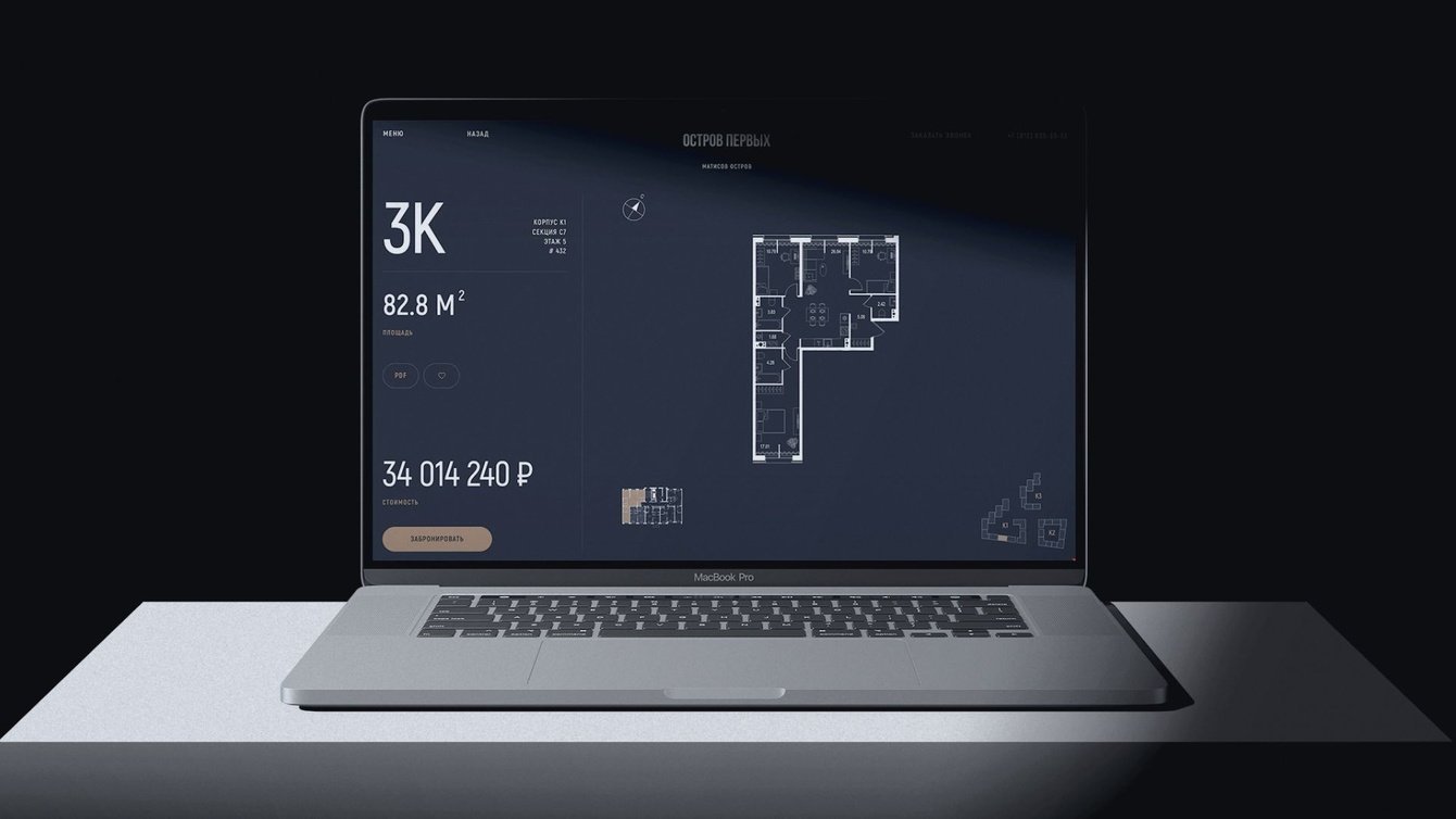 Полнофункциональный сайт премиального квартала «Остров первых» основан на эффектных 3D-визуализациях.