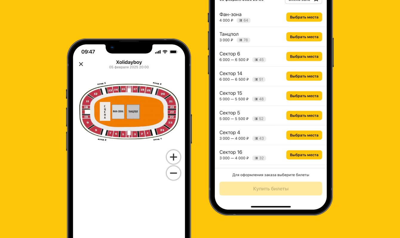 В 2024 году одним из вызовов стала задача по улучшению процесса выбора билетов. А именно добавление глобальной интерактивной схемы мест для площадок проведения мероприятий. Раньше определиться с местом было не очень удобно для пользователей. Схемы залов открывались в виде растровых картинок или через WebView, то есть подгружались с сайта Kassir. Для выбора места на огромном стадионе нужно было изучить картинку, определиться с сектором, вернуться к оформлению билета в приложении, найти этот сектор и место в списке. Покупатели могли путаться и бросали выбор, так и не доходя до оплаты билета.
