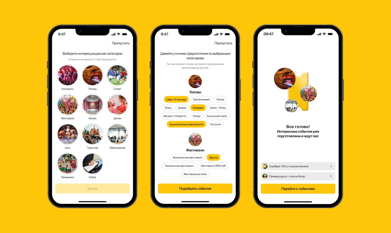 На всех платформах Kassir.ru, включая мобильное приложение, используется продвинутая система рекомендаций на базе искусственного интеллекта AI Personalization Engine. Алгоритм обучается на основе ответов из тура предпочтений и адаптируется к поведению пользователя в приложении — учитывает просмотренные события, купленные билеты и выбор других покупателей со схожими интересами. В результате пользователь получает персональные рекомендации событий, которые могут его заинтересовать.