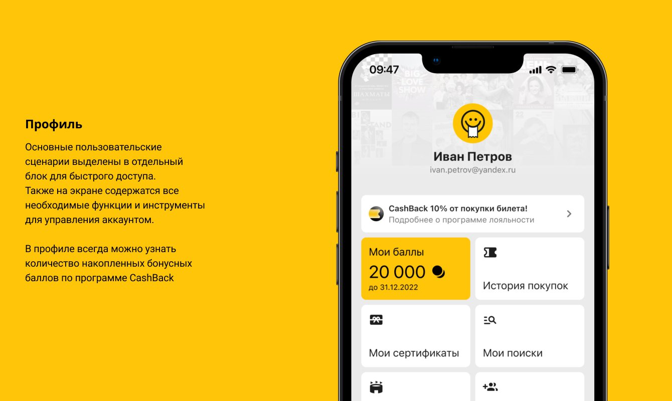 В профиль добавили максимум информации по активным и прошедшим заказам — пользователь увидит историю покупок, количество накопленных баллов, избранные площадки и личную информацию.