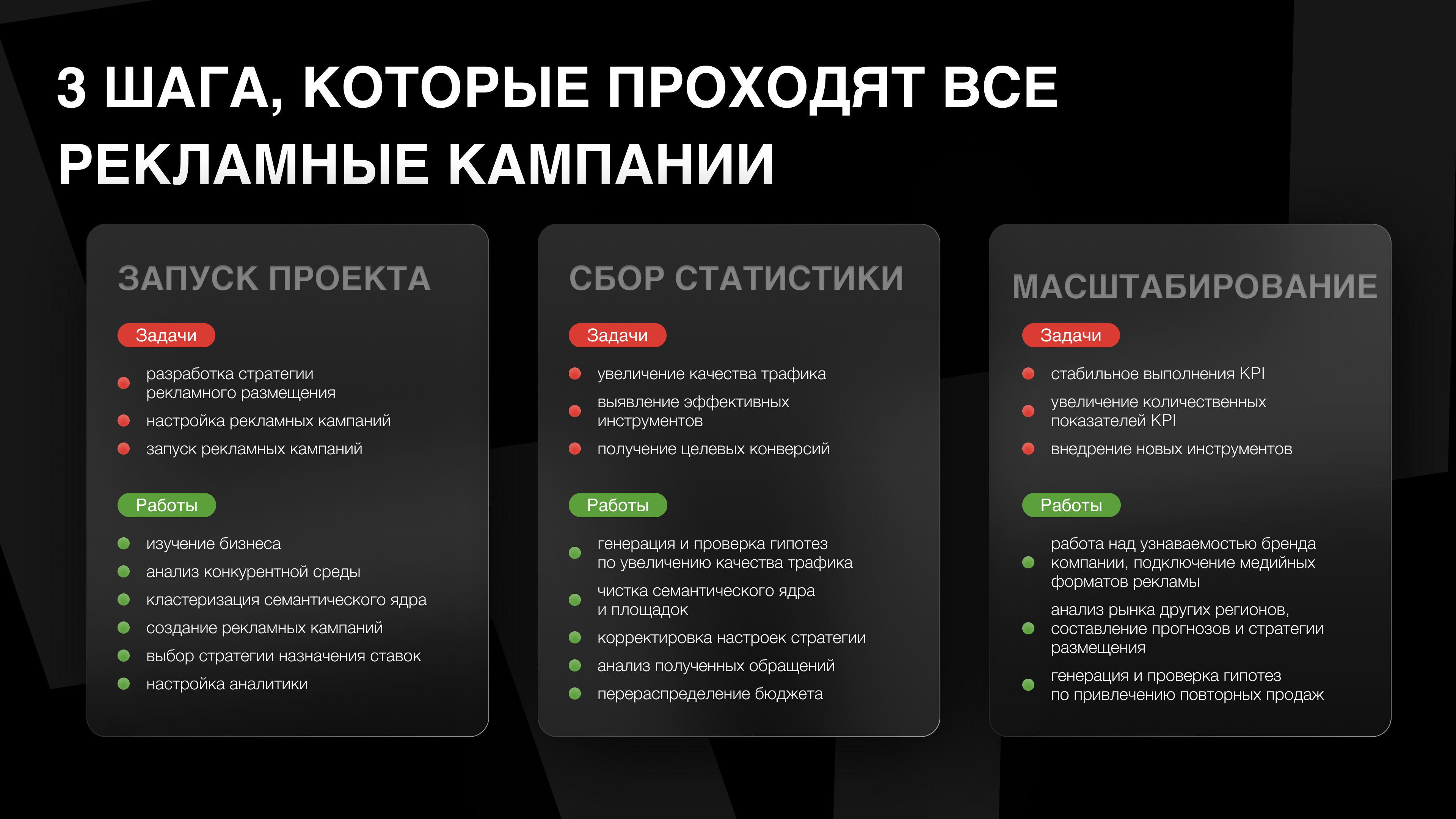 Параллельно с созданием посадочной страницы, мы начали разработку рекламных кампаний. Основные кампании включали: