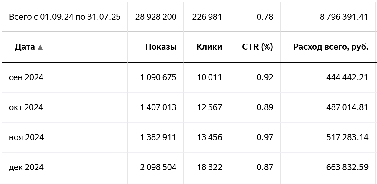 Несмотря на технические сложности по проекту осенью 2024, удержали эффективность даже в период снижения/поднятия бюджета.