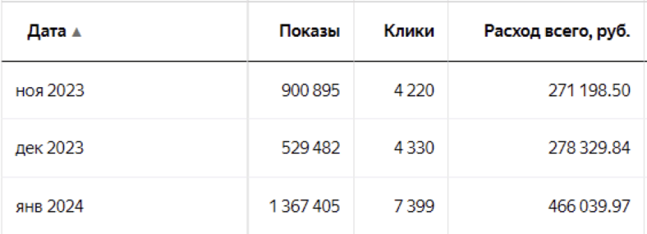 В марте разработали новую посадочную страницу, вторую воронку и протестировали свежие креативы с новыми заголовками. Это дало дополнительный прирост и позволило закрепиться на расходе 1 млн ₽ в месяц,