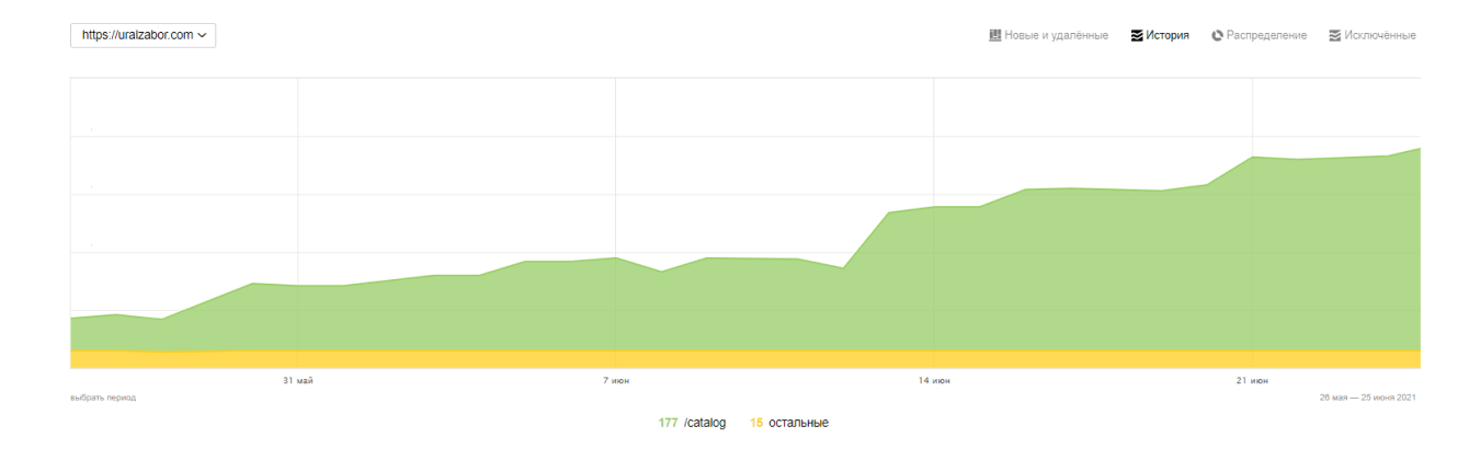 Как только были произведены базовые работы сайт начал постепенно индексироваться. Сайт запустили в индекс в мае 2021 года